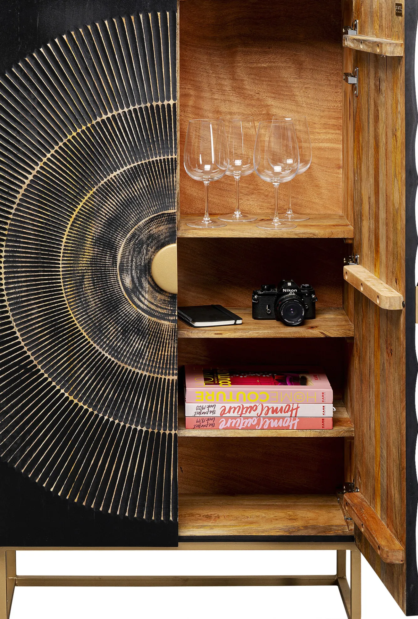 Front: lite drewno, ręczne wykonanie.