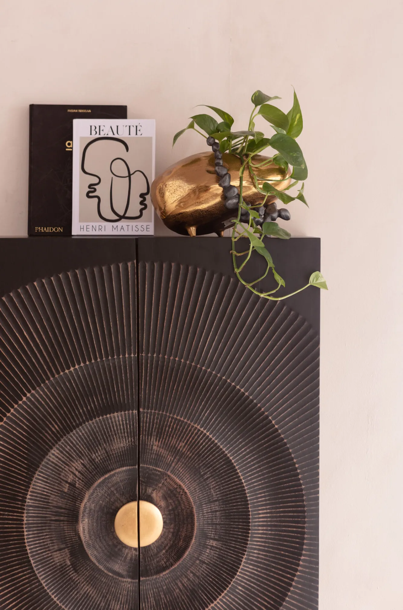 Komoda wysoka drewniana boho czarno-brązowa 76×140 cm