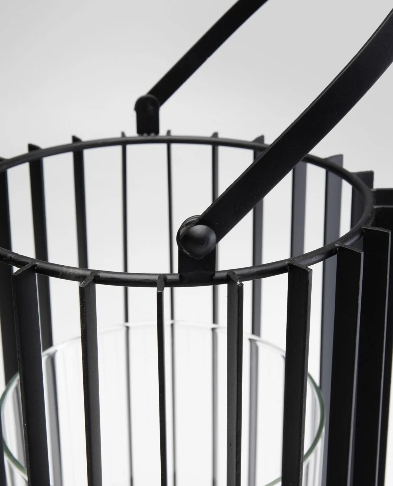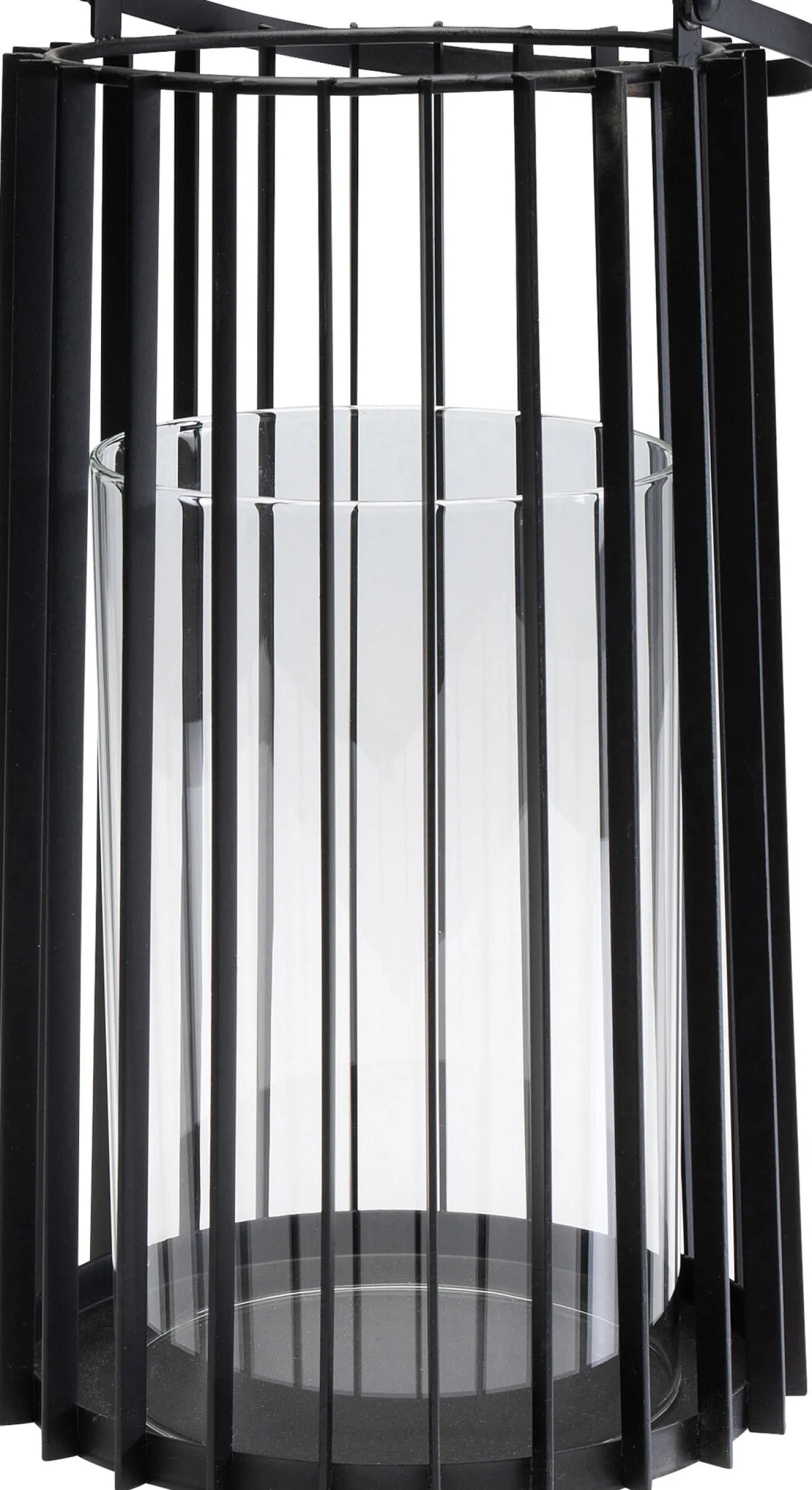 Latarenka z uchwytem stalowa czarna Ø22×50 cm Materiały: stal malowana proszkowo, szkło transparentne.