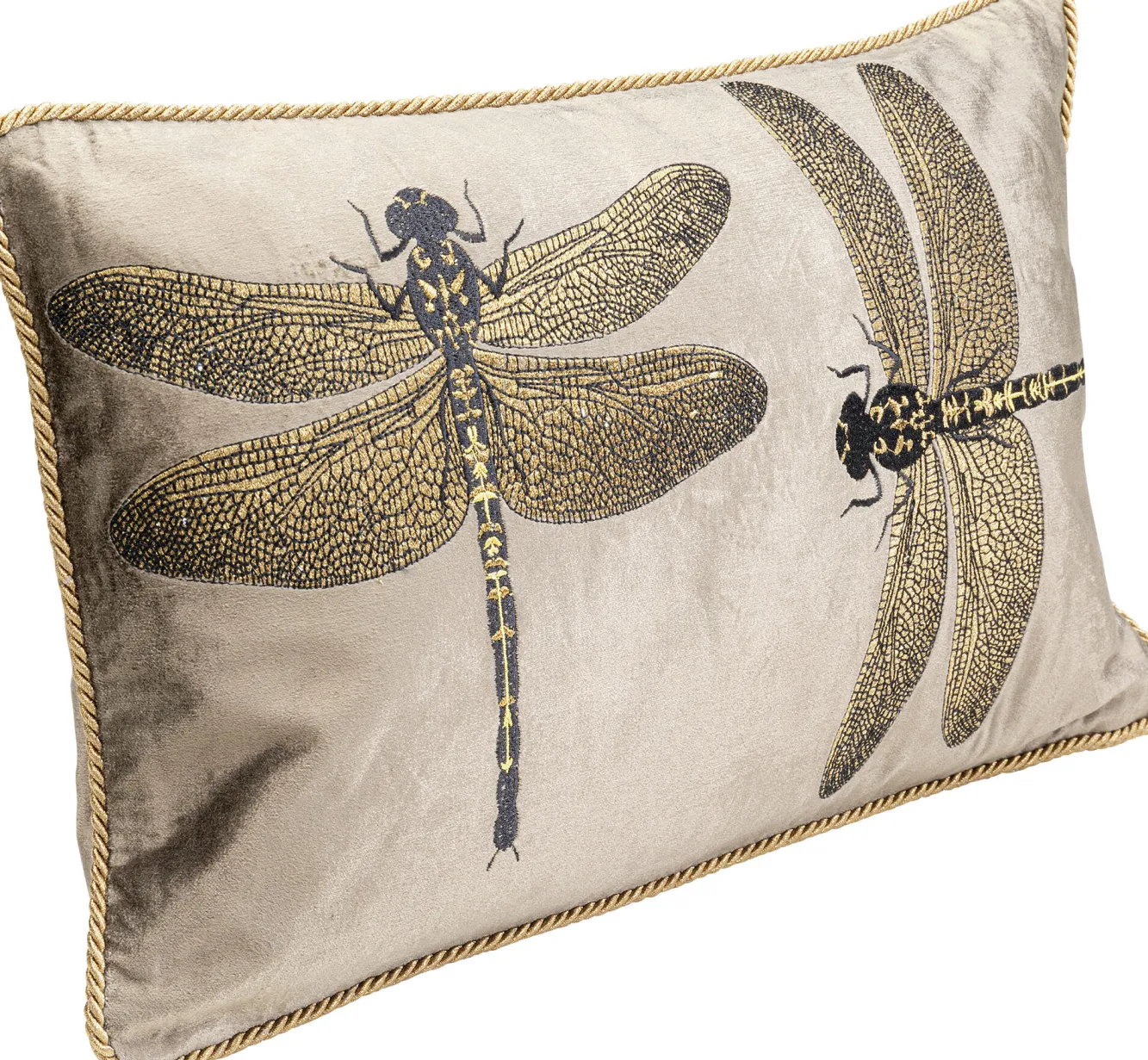 Poduszka dekoracyjna nowoczesna z motywem ważki brązowa 50×30 cm Zamek błyskawiczny.