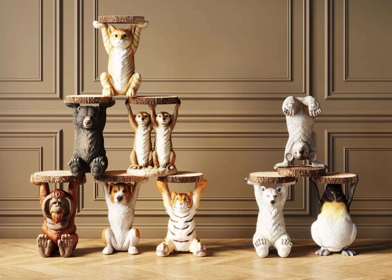 Seria stolikówAnimal to kolejna propozycja słynącej z nieszablonowego podejścia do designuniemieckiej marki KARE, która przypadnie do gustu w szczególności miłośnikommotywów zwierzęcych we wnętrzach. Wśród wchodzących w skład tej kolekcji modeliznajdziecie stoliki kawowe Animal MsCat kolorowe o kształcie uroczych zwierzaków trzymających okrągłykawałek drewna, wykonane w całości z tworzywa sztucznego, które zapewnikomfortowe użytkowanie i pozwoli na łatwe utrzymanie ich w czystości. Czytelnainspiracja naturą i jednoczesne nawiązanie do nowoczesnej estetyki pozwoli Wamz powodzeniem wykorzystać ich potencjał w różnych wnętrzach.