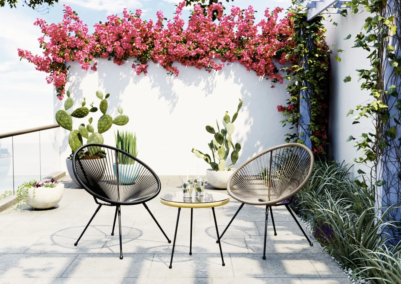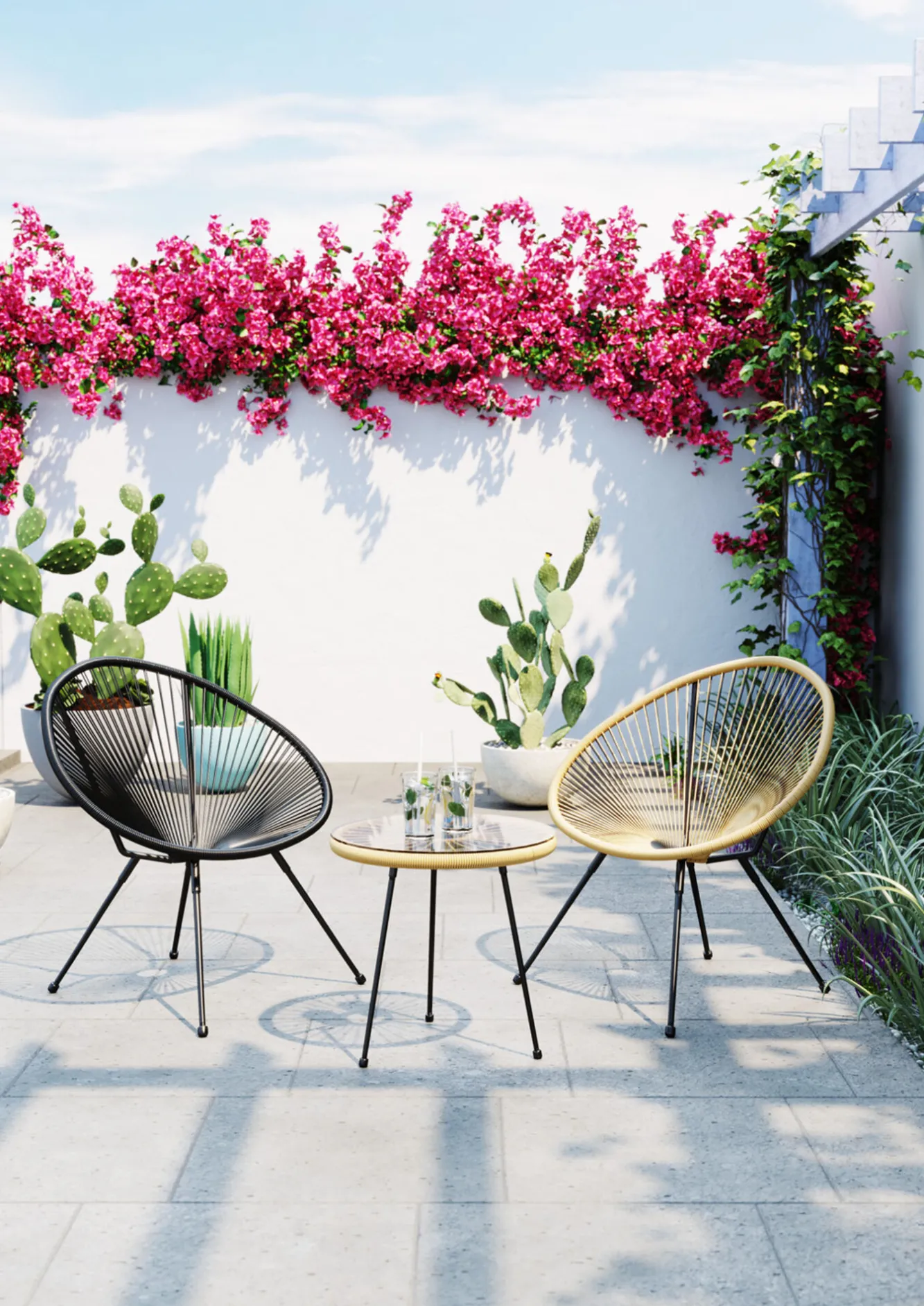 Stolik kawowy Acapulco Ø50 cm naturalny – blat szklany