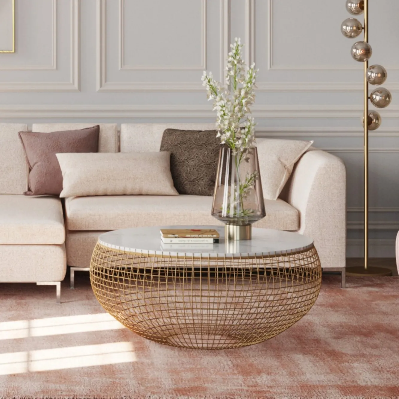 Stolik kawowy Cesta Marbel Ø100 cm złoty