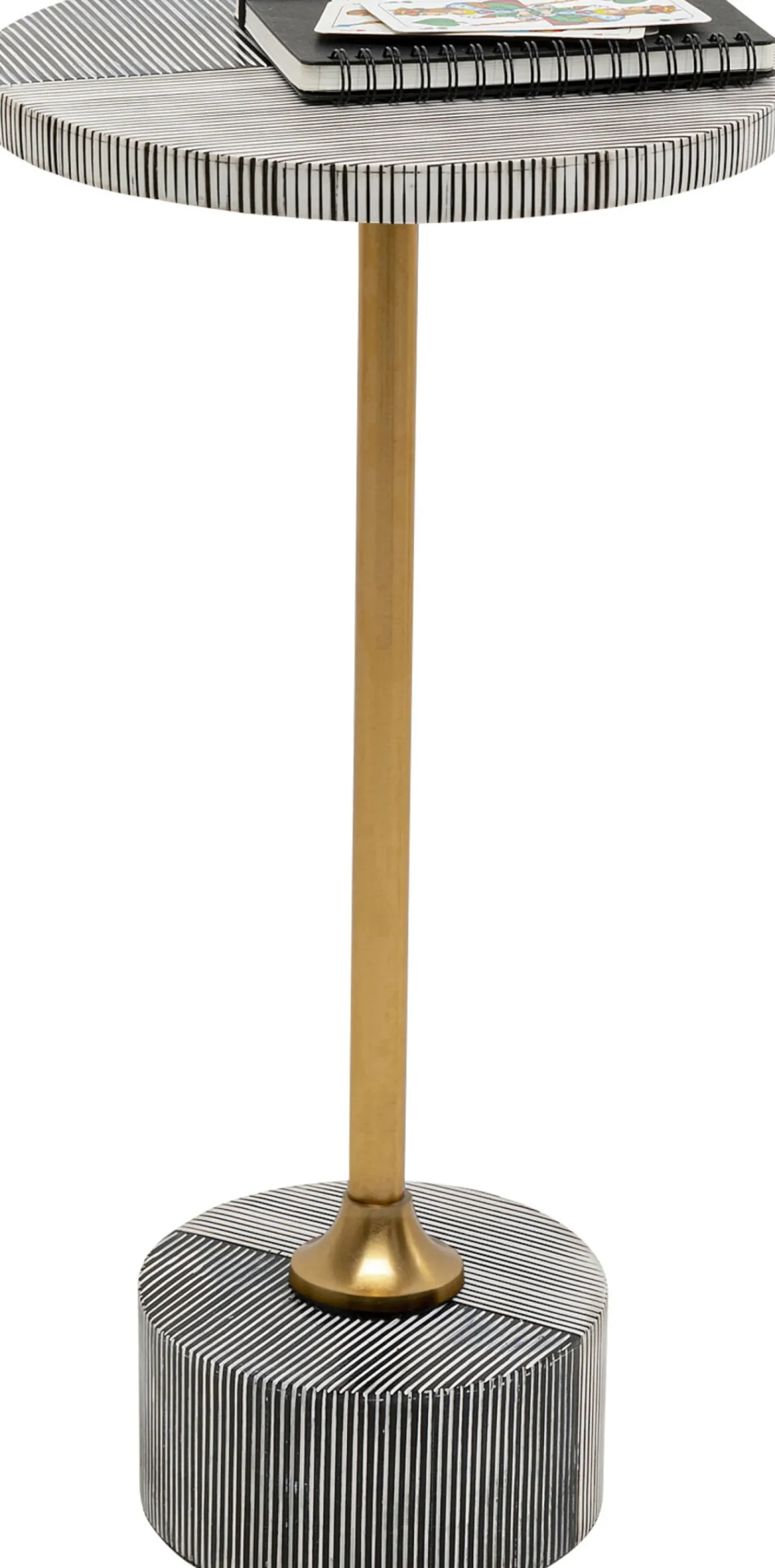 Stolik pomocniczy okrągły biało-czarny wzór w linie Ø25×50 cm