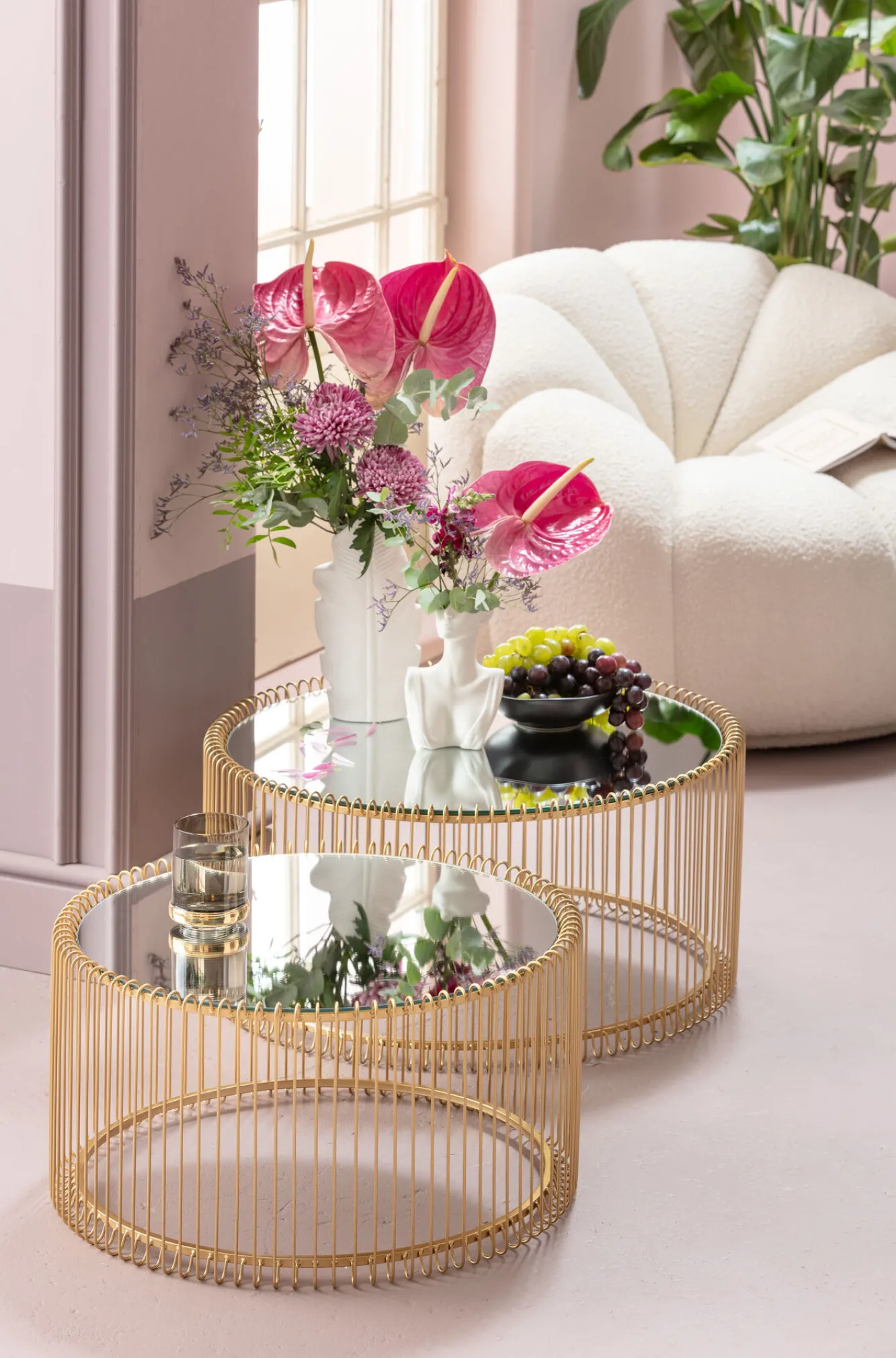Online KARE Design Zestaw dwóch stolików kawowych Wire mosiężne – KARE