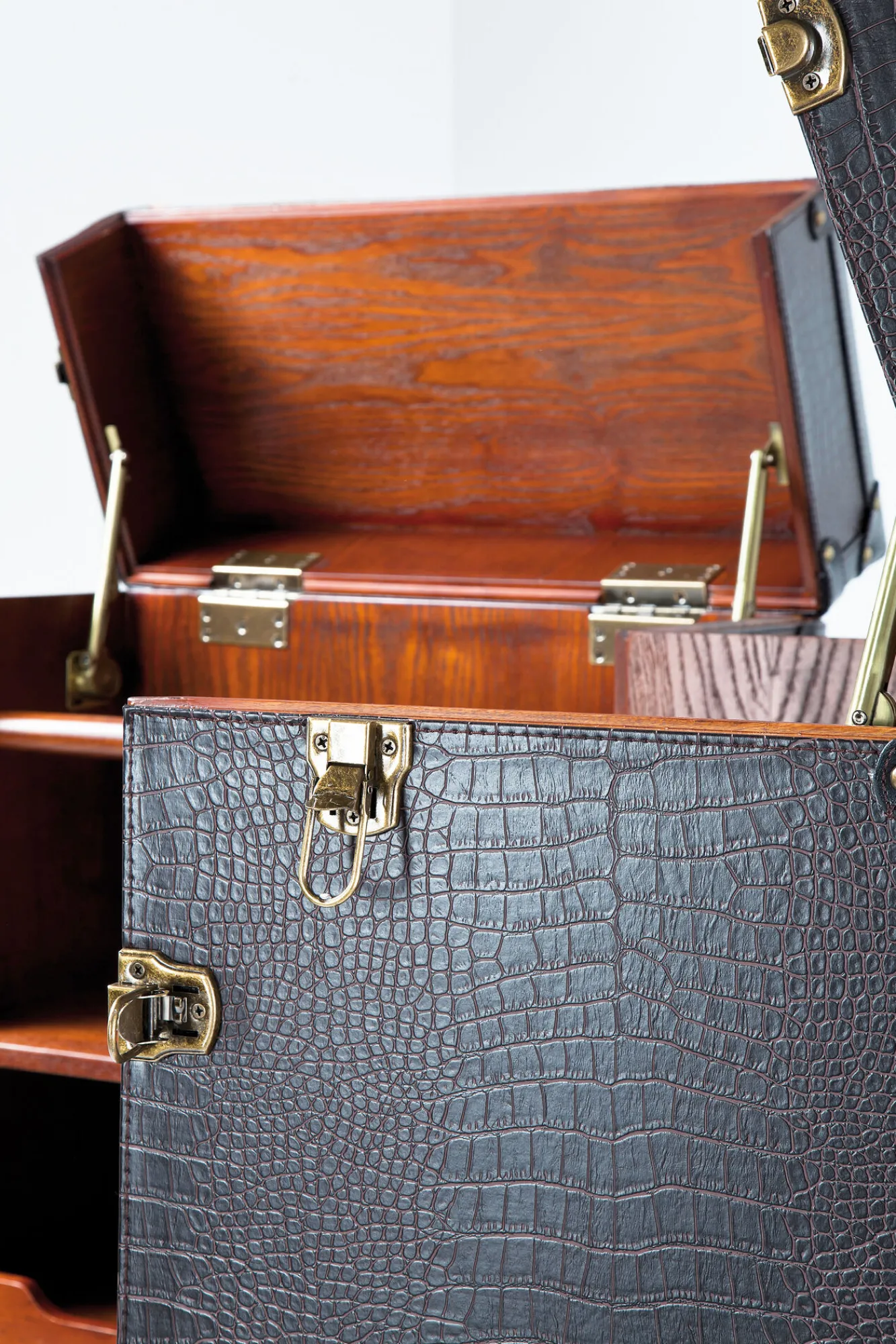 Barek rozkładany skrzynia na kółkach czarno-brązowy 60×153 cm