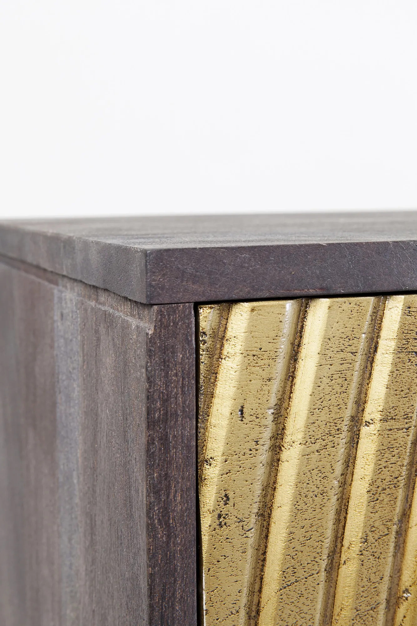 Seria mebli Circulo posiada celowe przetarcia, pęknięcia lub nierówności na powierzchni. Znaczne ubytki w drewnie są charakterystyczną cechą kolekcji i nie stanowią wady produktu.