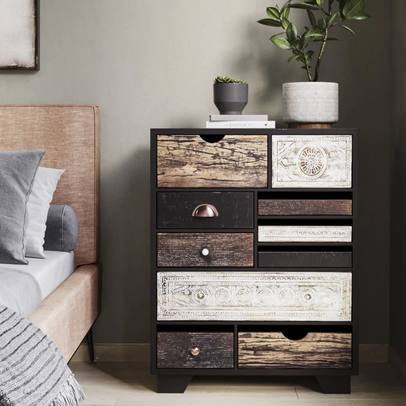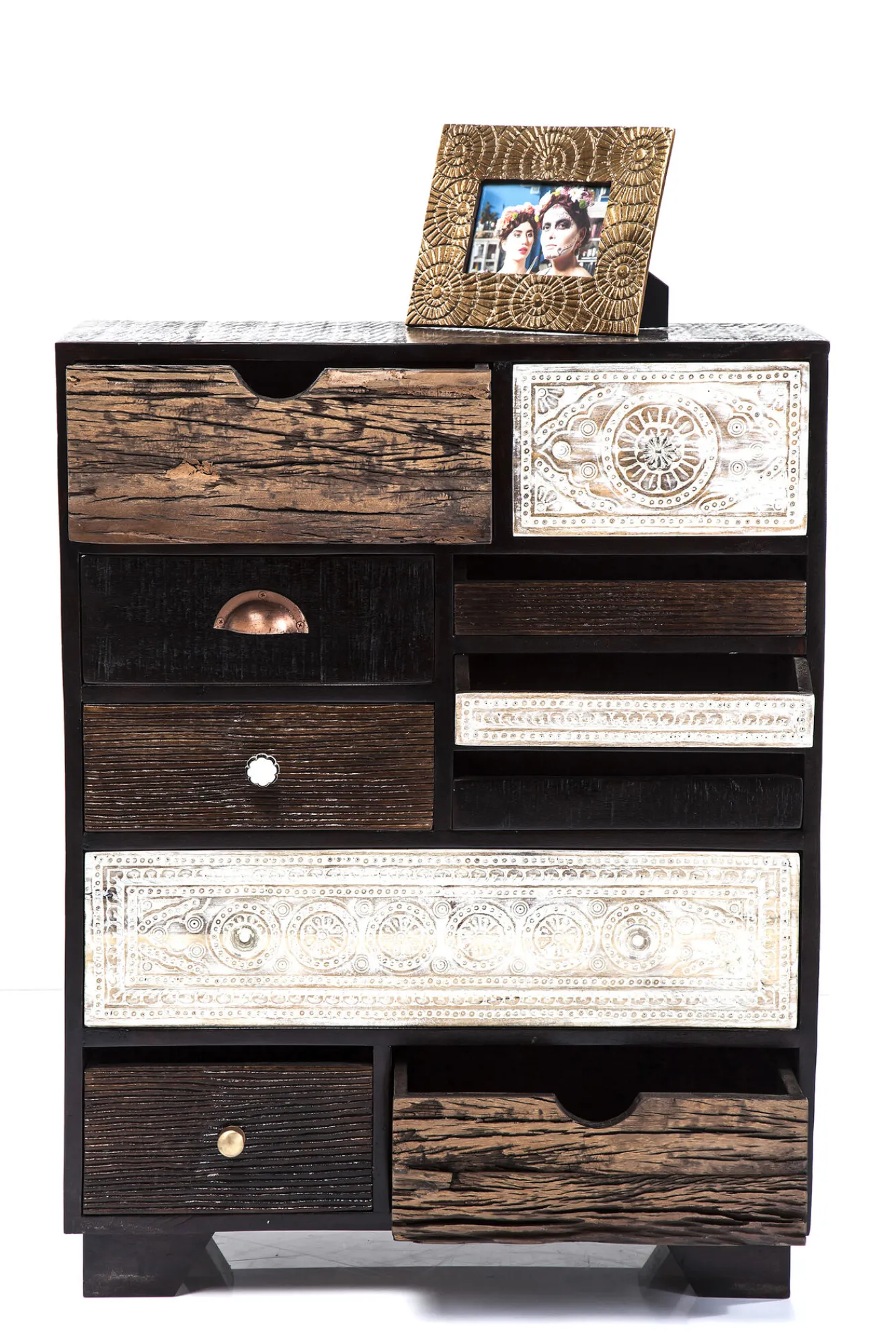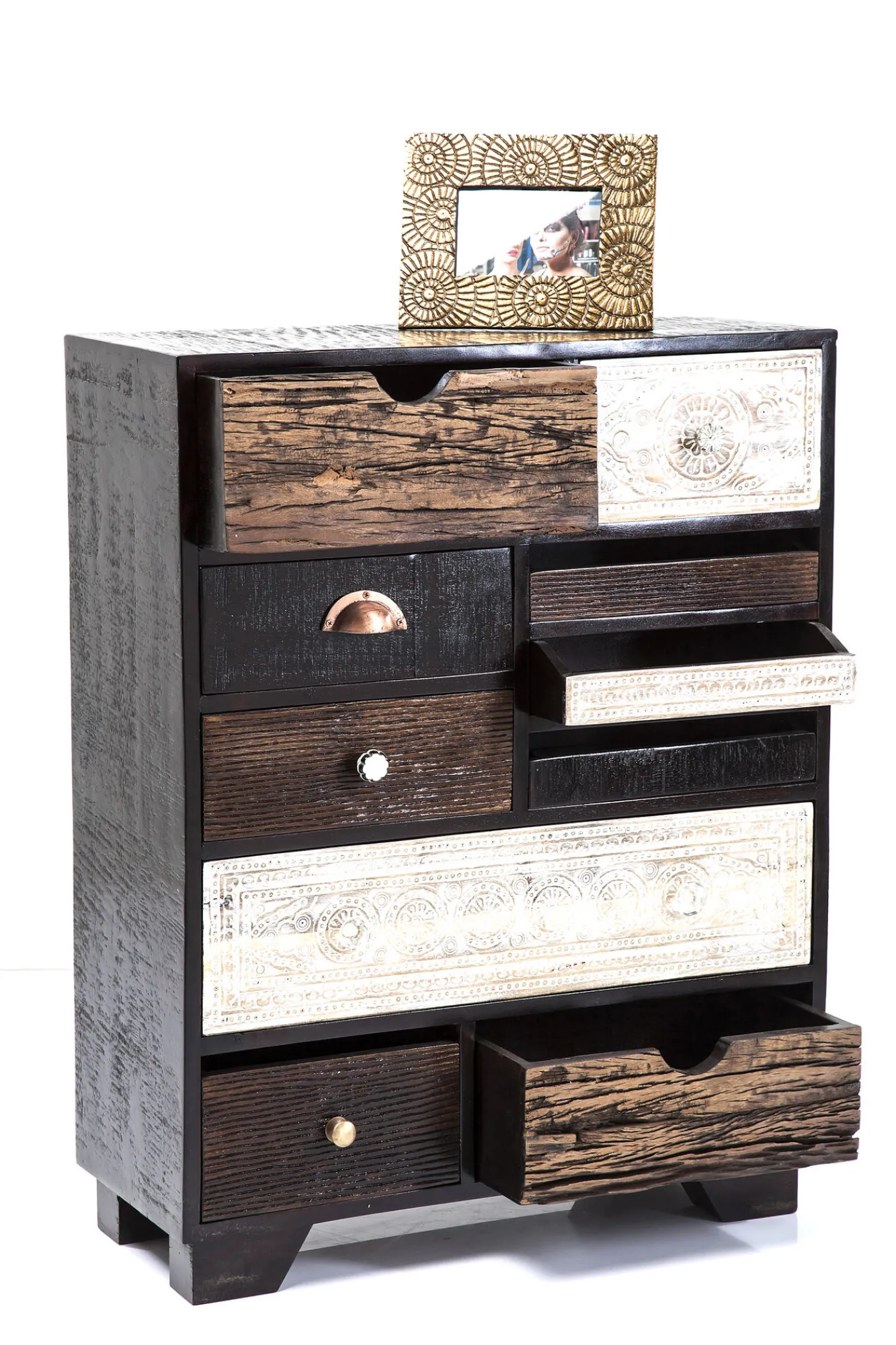 Komoda Finca 70×90 cm ciemnobrązowa – fronty kolorowe