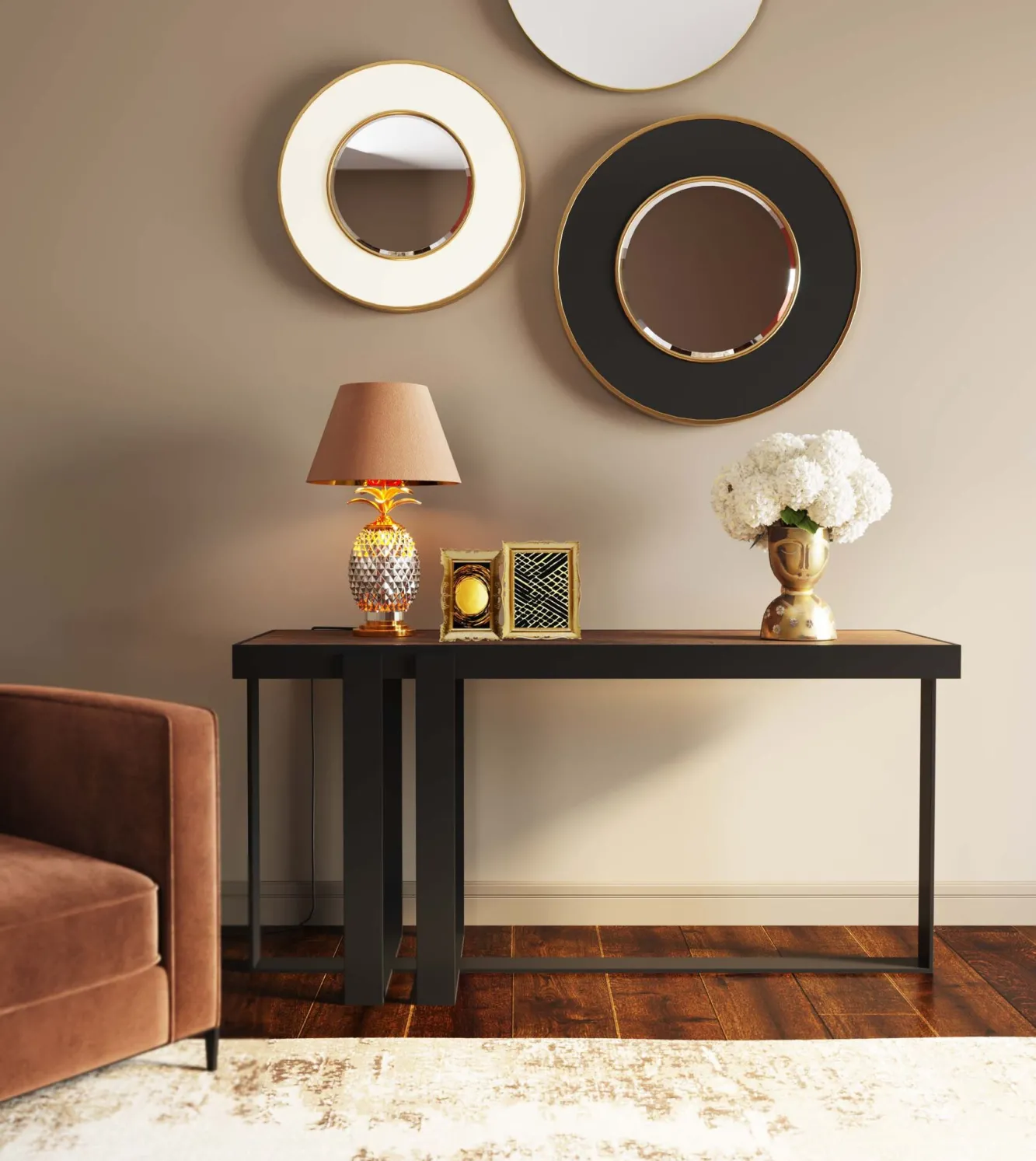 Best KARE Design Konsola do przedpokoju loft czarna stalowa blat lustrzany 120×33 cm – KARE