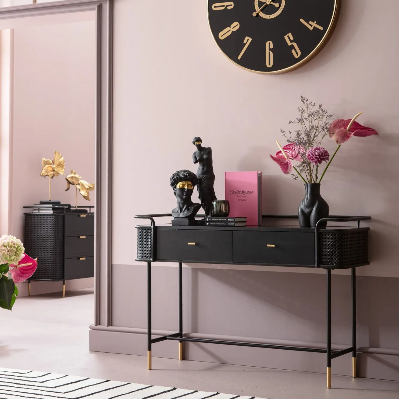 Konsola z szufladami Fence 120×40 cm czarna – blat szklany