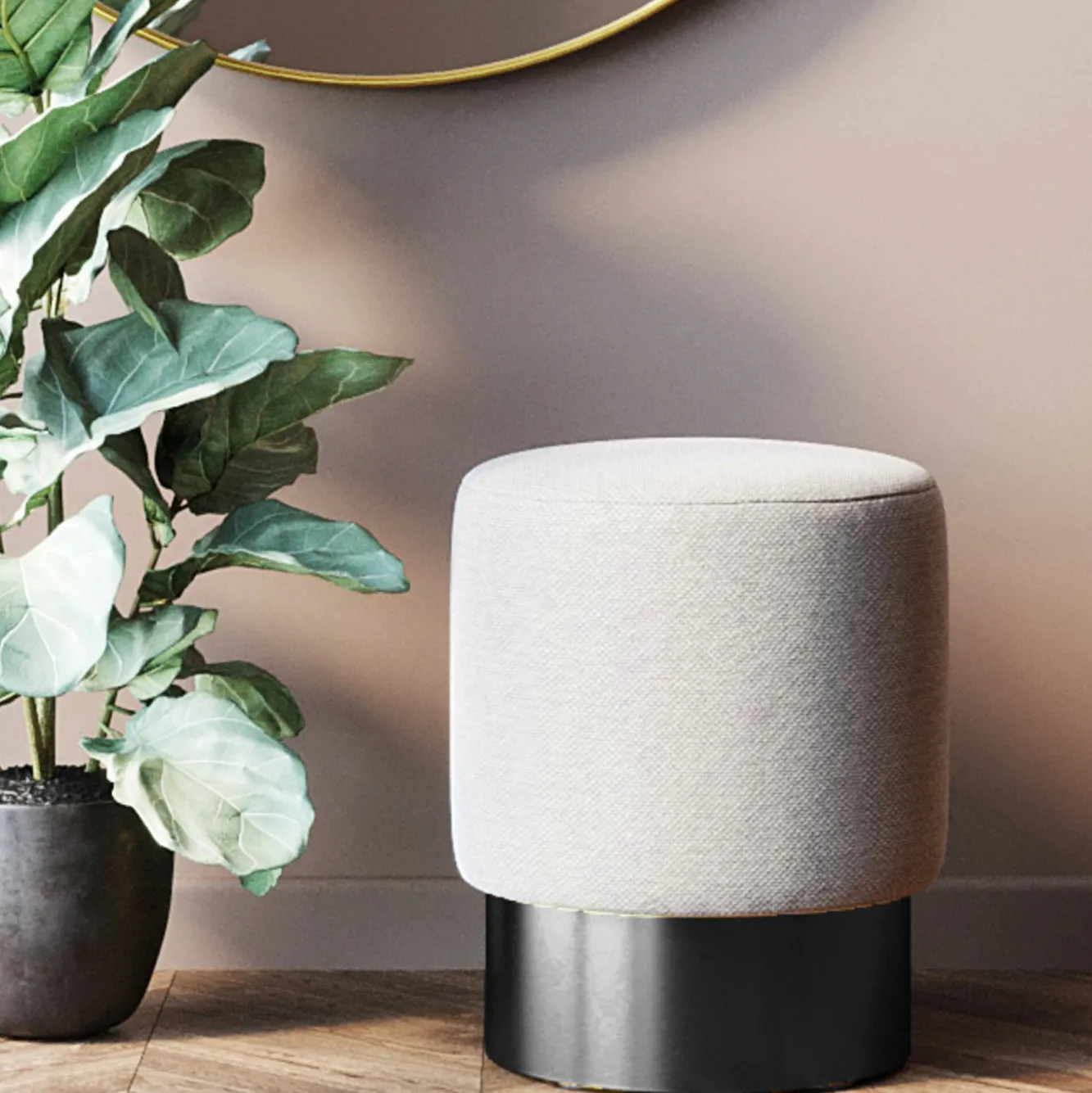 Pufa okrągła tapicerowana kremowa Ø36×44 cm podstawa czarna