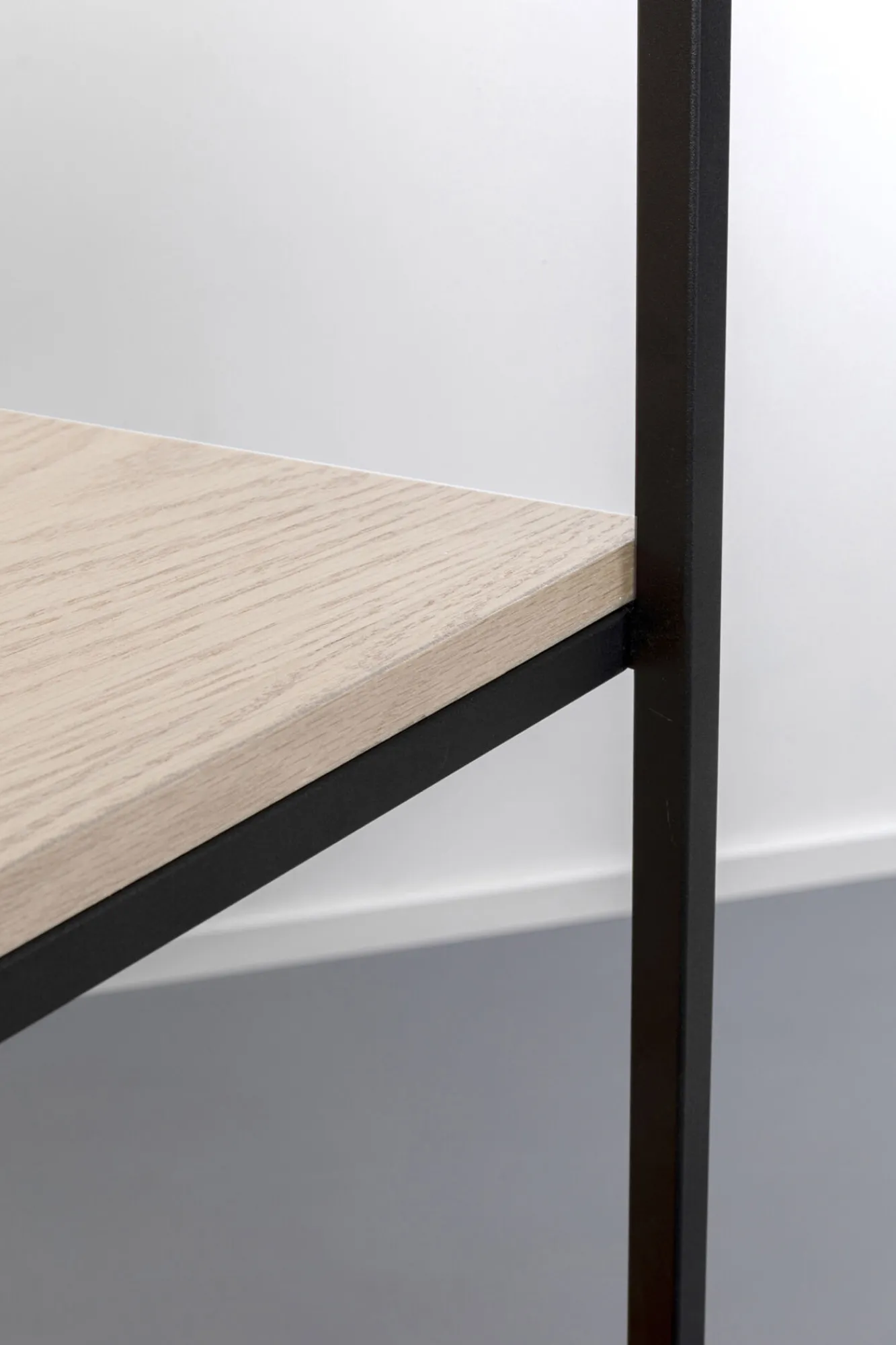 Regał ze schowkiem półki naturalne fornir dębowy rama czarna stalowa 180×183 cm