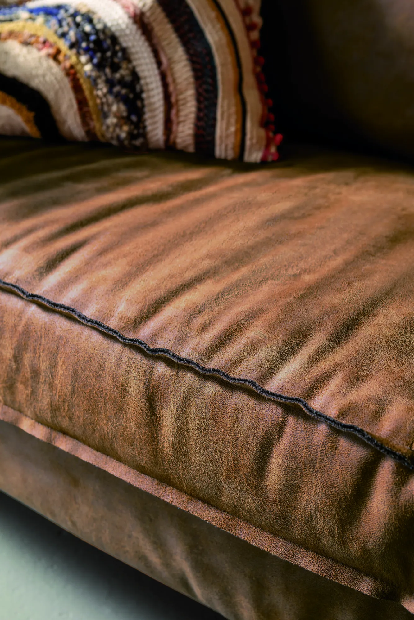 Ta brązowa sofa w stylu vintage to niezwykle udane połączenie przytulnej estetyki i komfortu z modnym trendem. Za jej projektem skrywa się wiodąca firma KARE, ikona współczesnego designu. Niemiecka marka słynie z bezkompromisowości, trudnego do podrobienia wzornictwa, ale też z wszechstronności. Doskonale odnajduje się w szerokim spektrum nurtów aranżacyjnych i porusza się po nich ze swobodą i klasą. Prezentowana sofa brązowa wniesie sporą dawkę elegancji oraz ponadczasowego piękna. To mebel z duszą, któremu za sprawą recyklingowanego surowca zostało dane drugie życie. Nadgryziona czasem estetyka vintage z uwagi na swój eklektyczny charakter, zapewni tej sofie ze skóry recyklingowanej szerokie możliwości aranżacyjne.