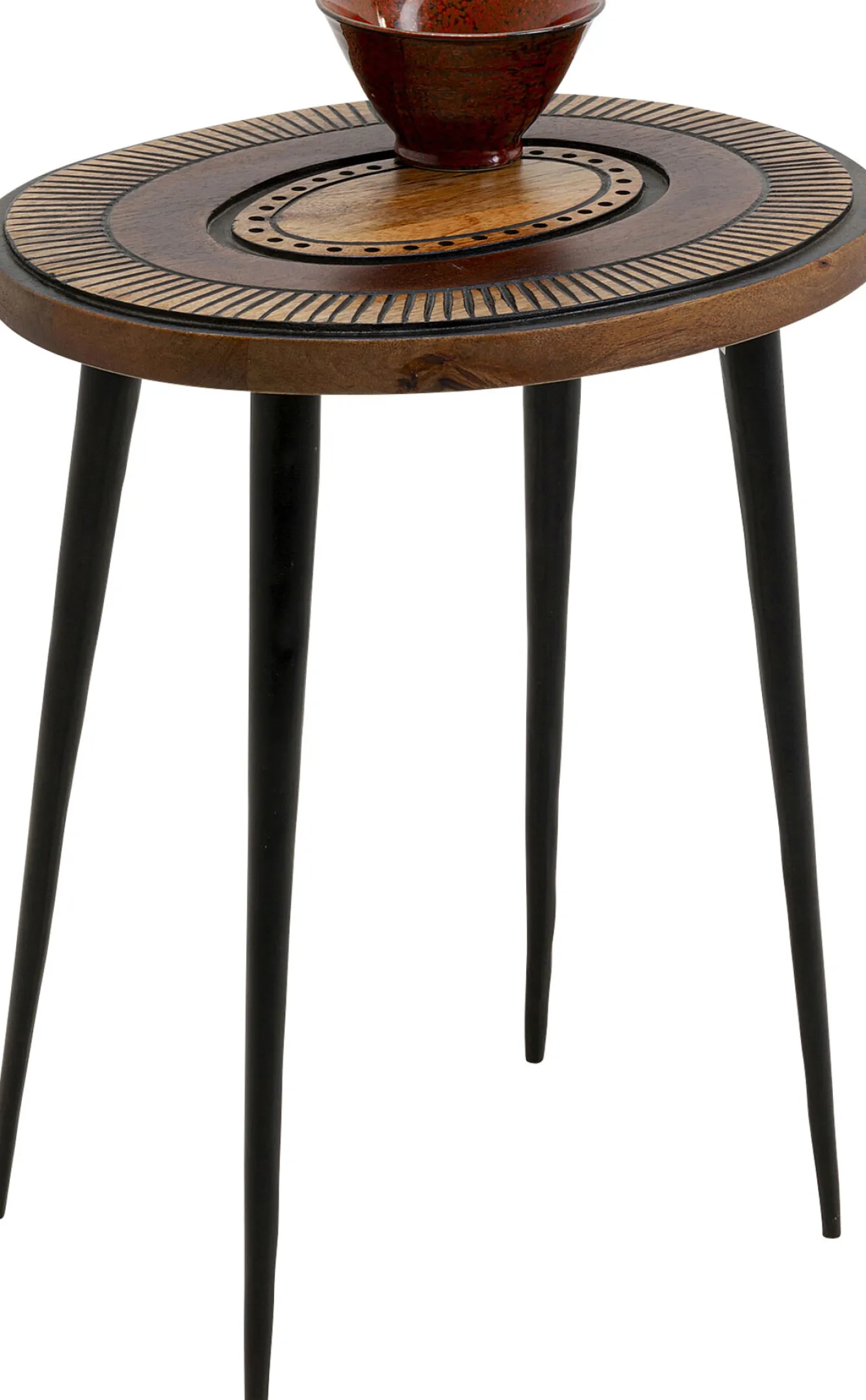 Stolik pomocniczy owalny boho drewno mango i stal 40×30 cm