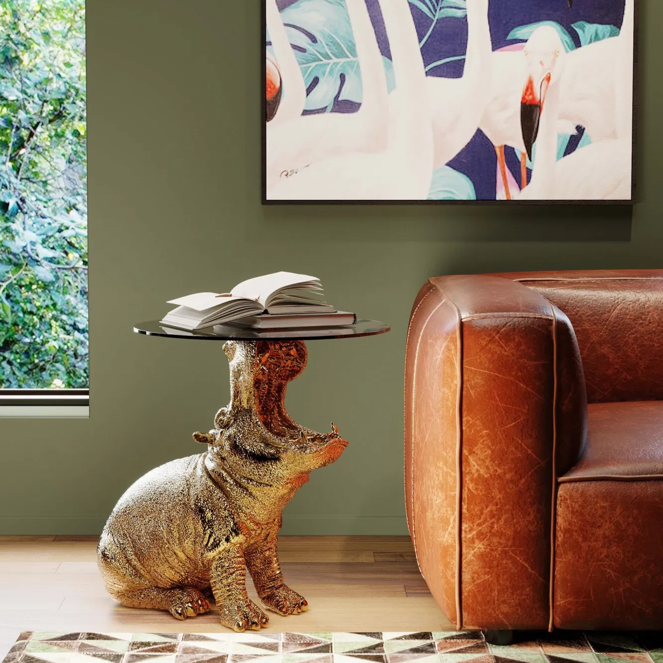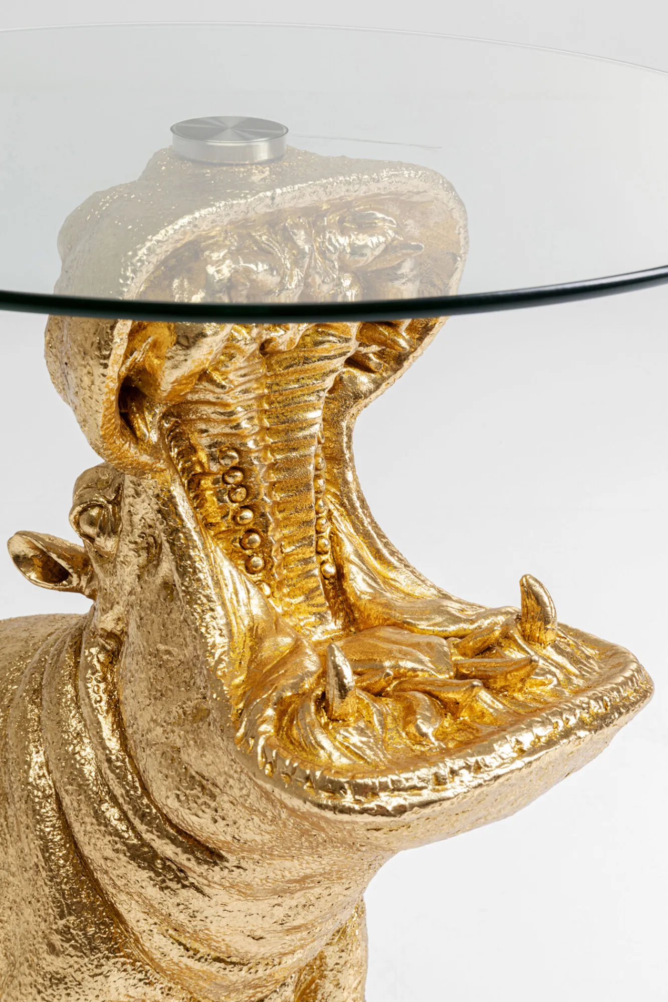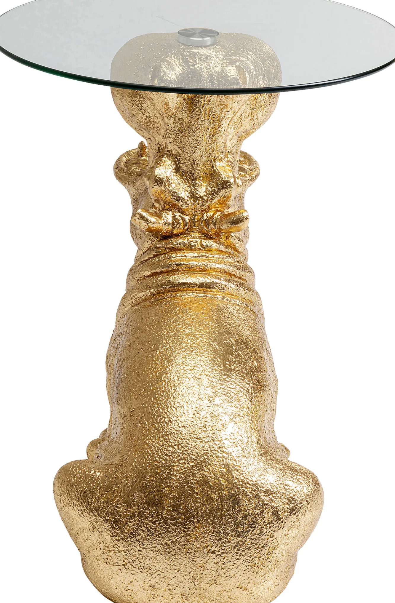 Stolik pomocniczy złoty hipopotam blat szklany Ø48xH60 cm