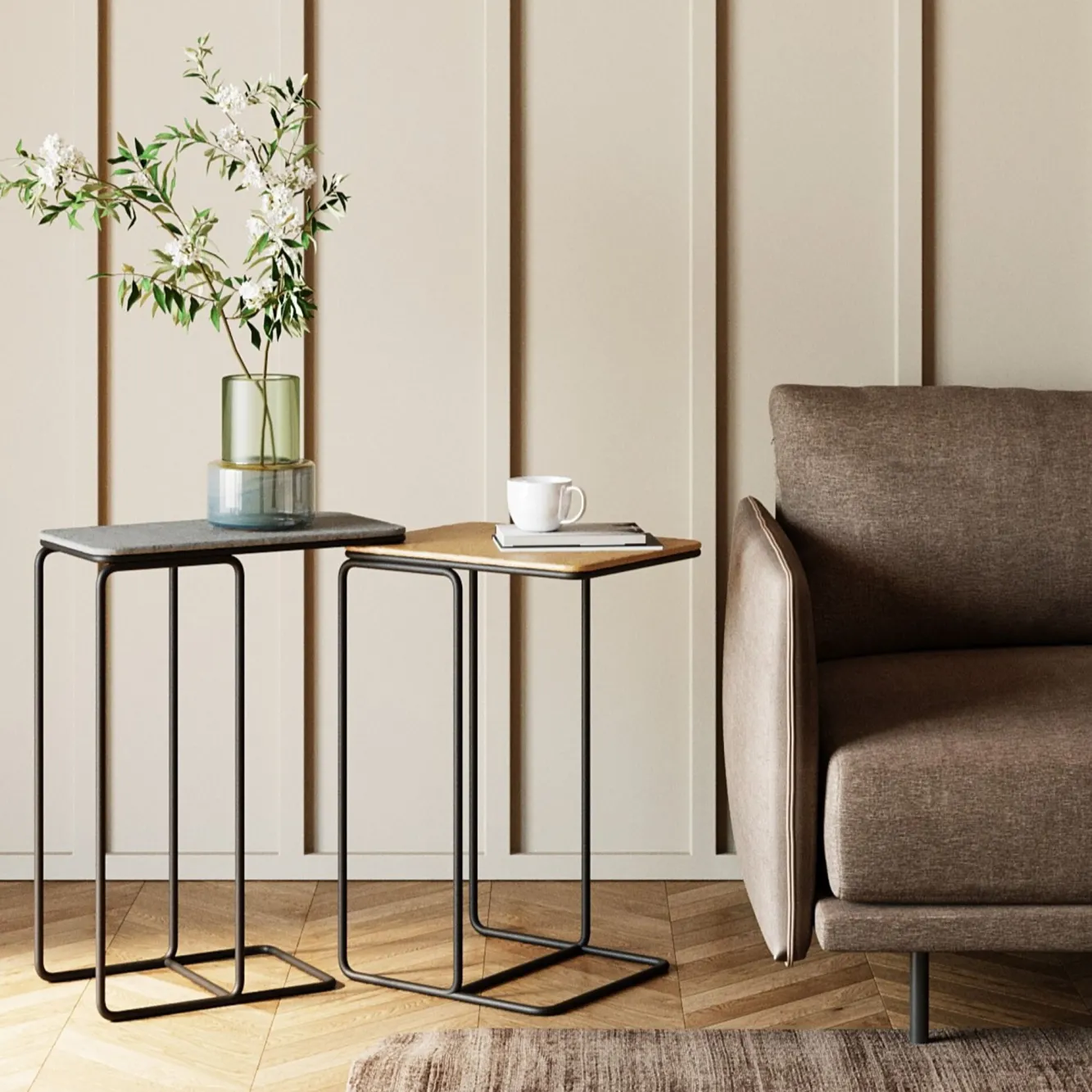 Stoliki pomocnicze blaty aluminiowe nogi stalowe czarny i złoty 2-set