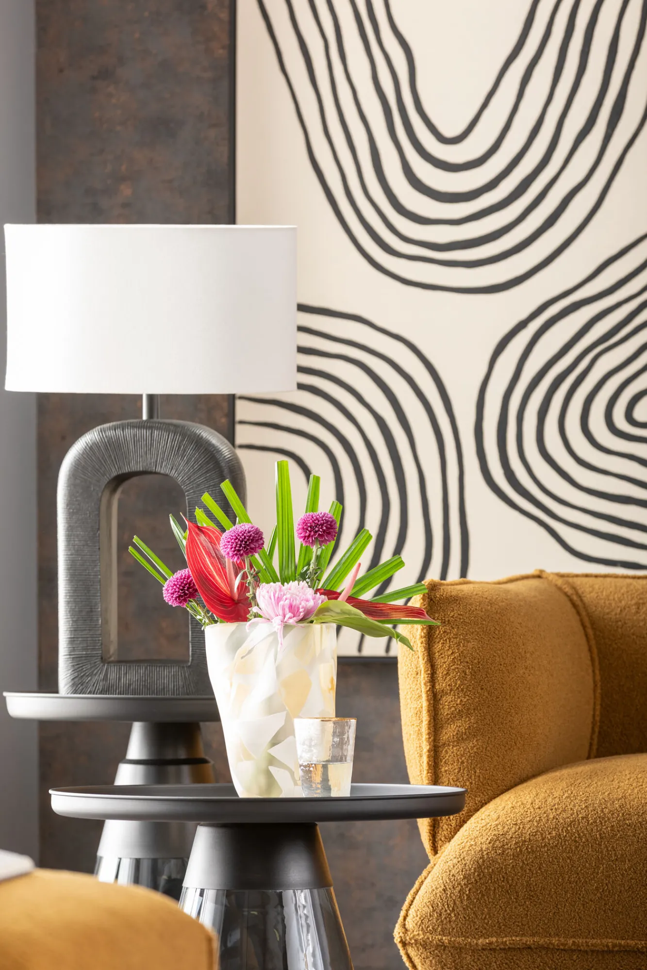 Wazon szklany do salonu brązowe wzory 19×29 cm