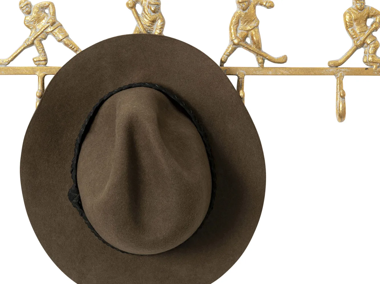 Wieszak ścienny stalowy złoty motyw sportowy hokej 48×16 cm Max. obciążenie: 5 kg.