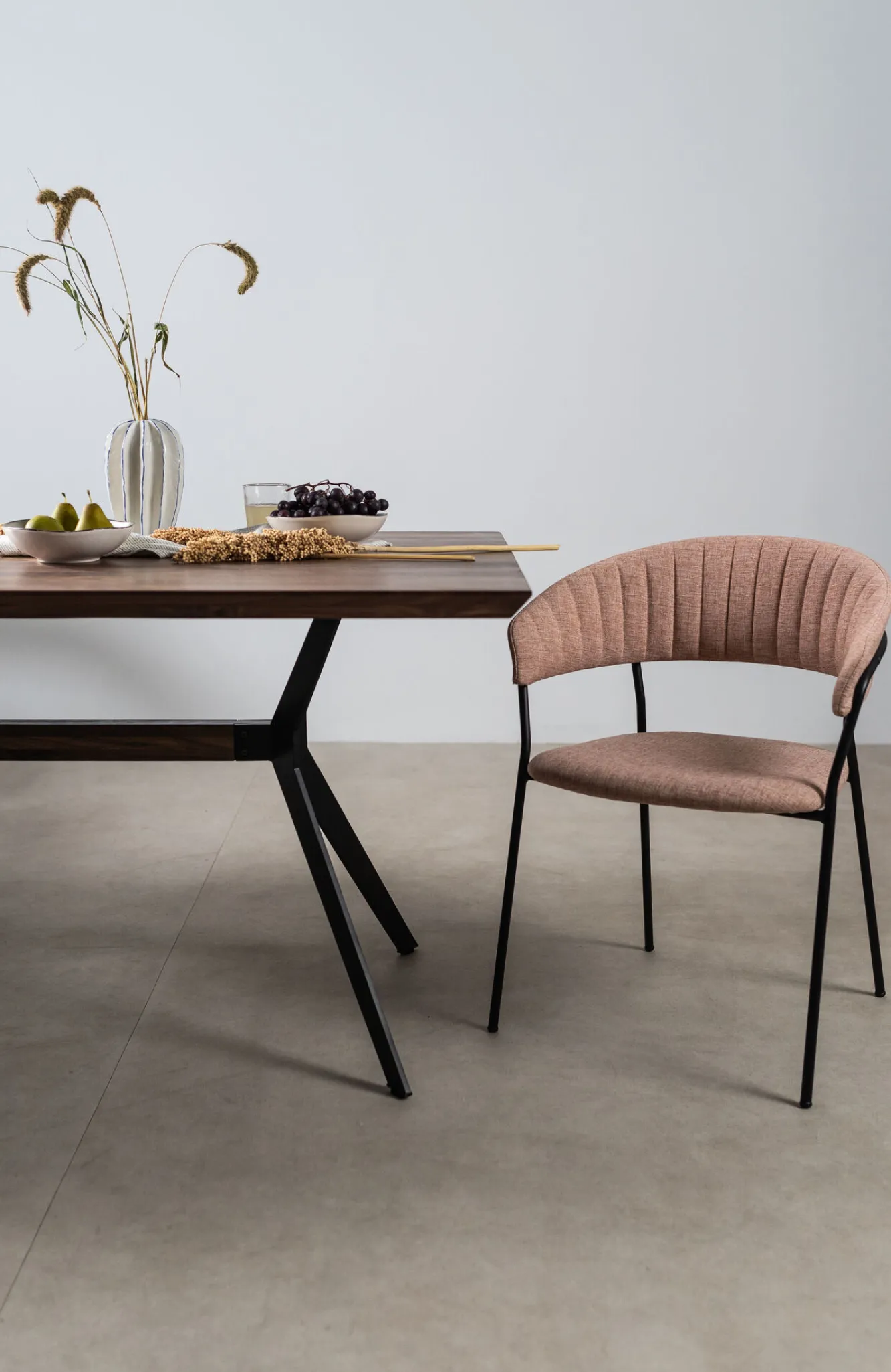 Zestaw dwóch krzeseł różowe nogi czarne 57×78 cm Tapicerka: 70% poliester, 30% akryl.Wypełnienie: pianka poliuretan…