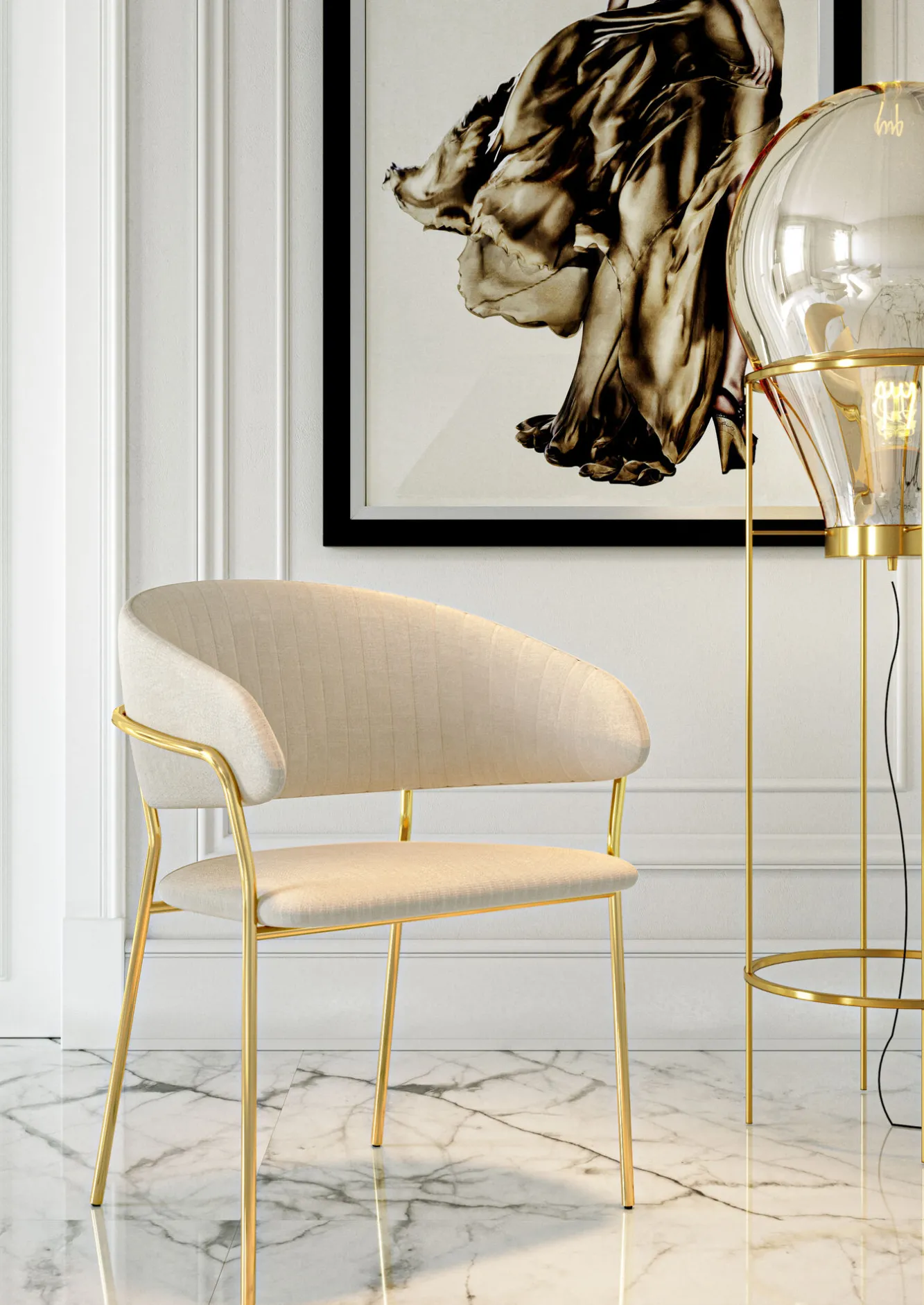 Zestaw dwóch krzeseł z podłokietnikami Belle 61×80 cm kremowe Tkanina: 100% poliesterWypełnienie oparcia: 25 kg/m³ …
