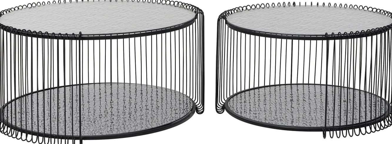Zestaw dwóch stolików blaty szklane rama stalowa – kolor czarny Rama: stal malowana proszkowo.Blaty, półki: szkło b…