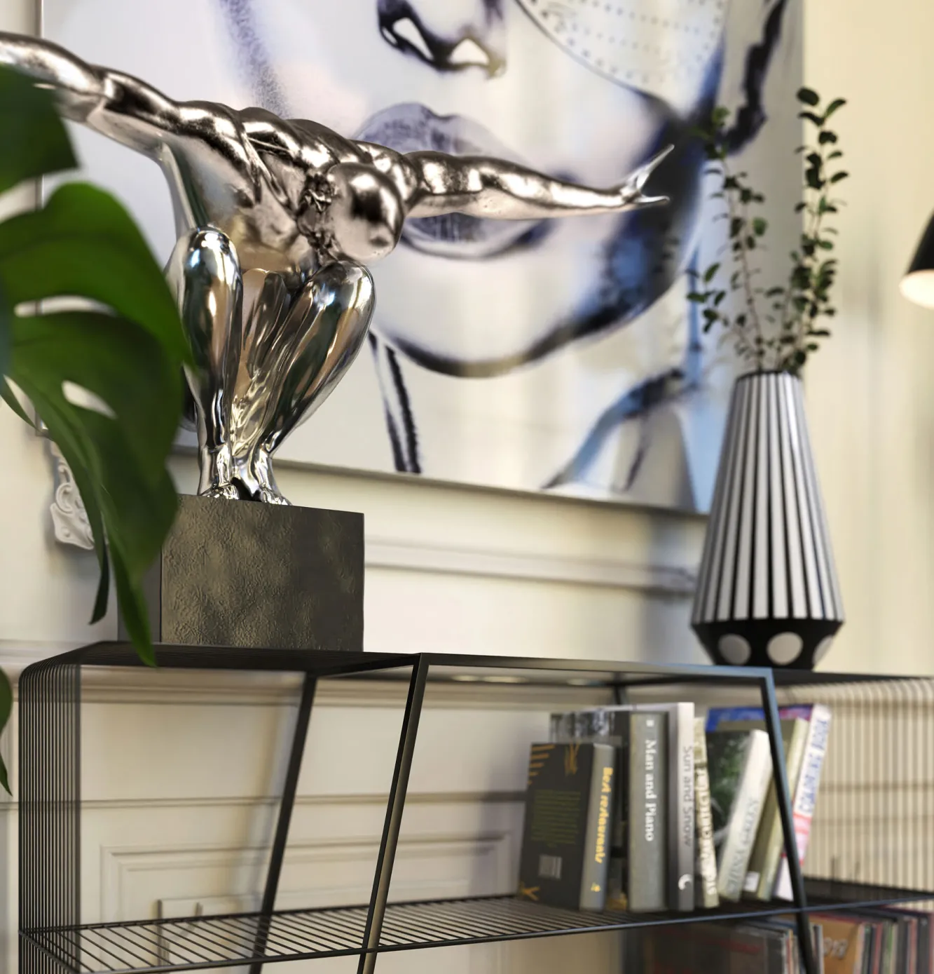 Dekoracja stojąca Athlete XL 100×64 cm srebrna