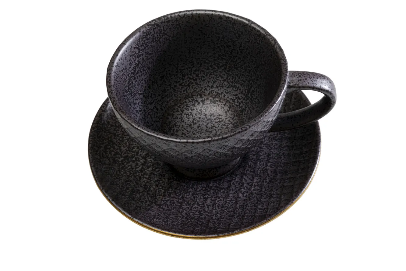 Filiżanka ze spodkiem z porcelany czarno-złota 200 ml
