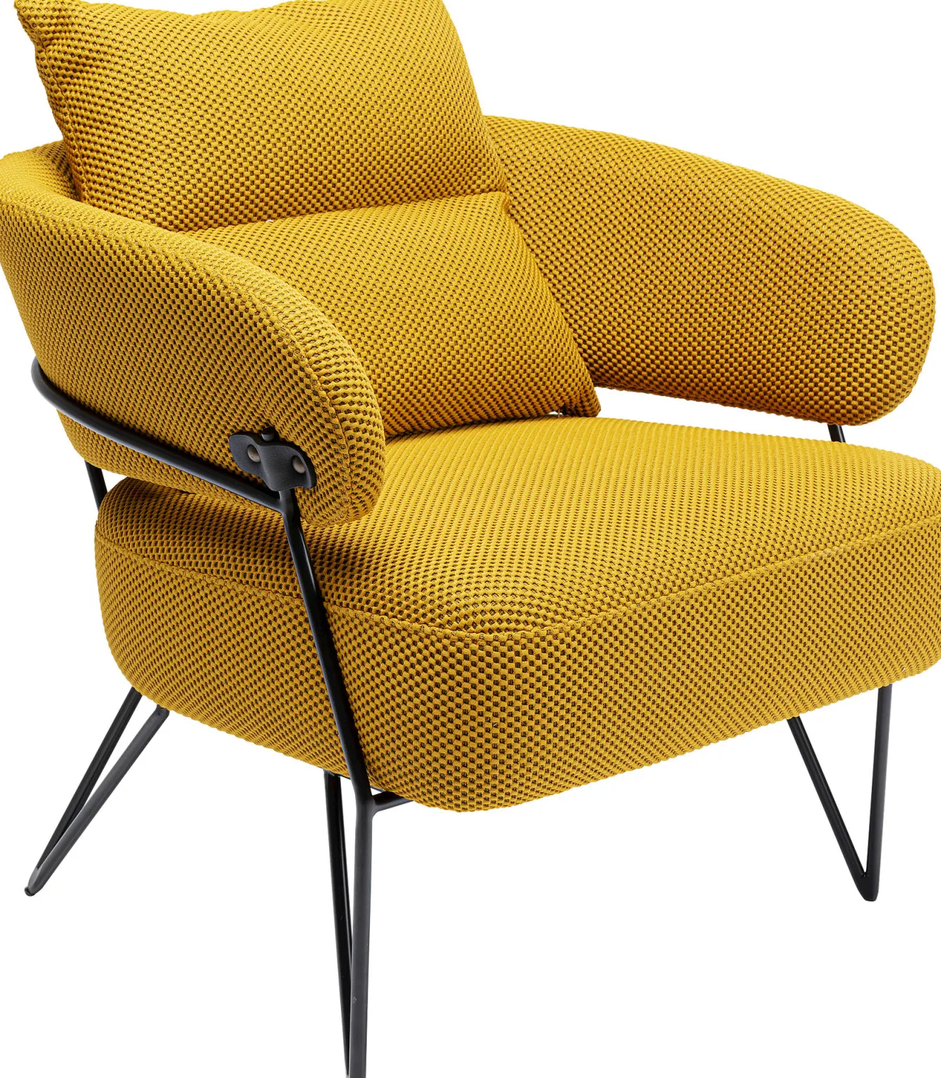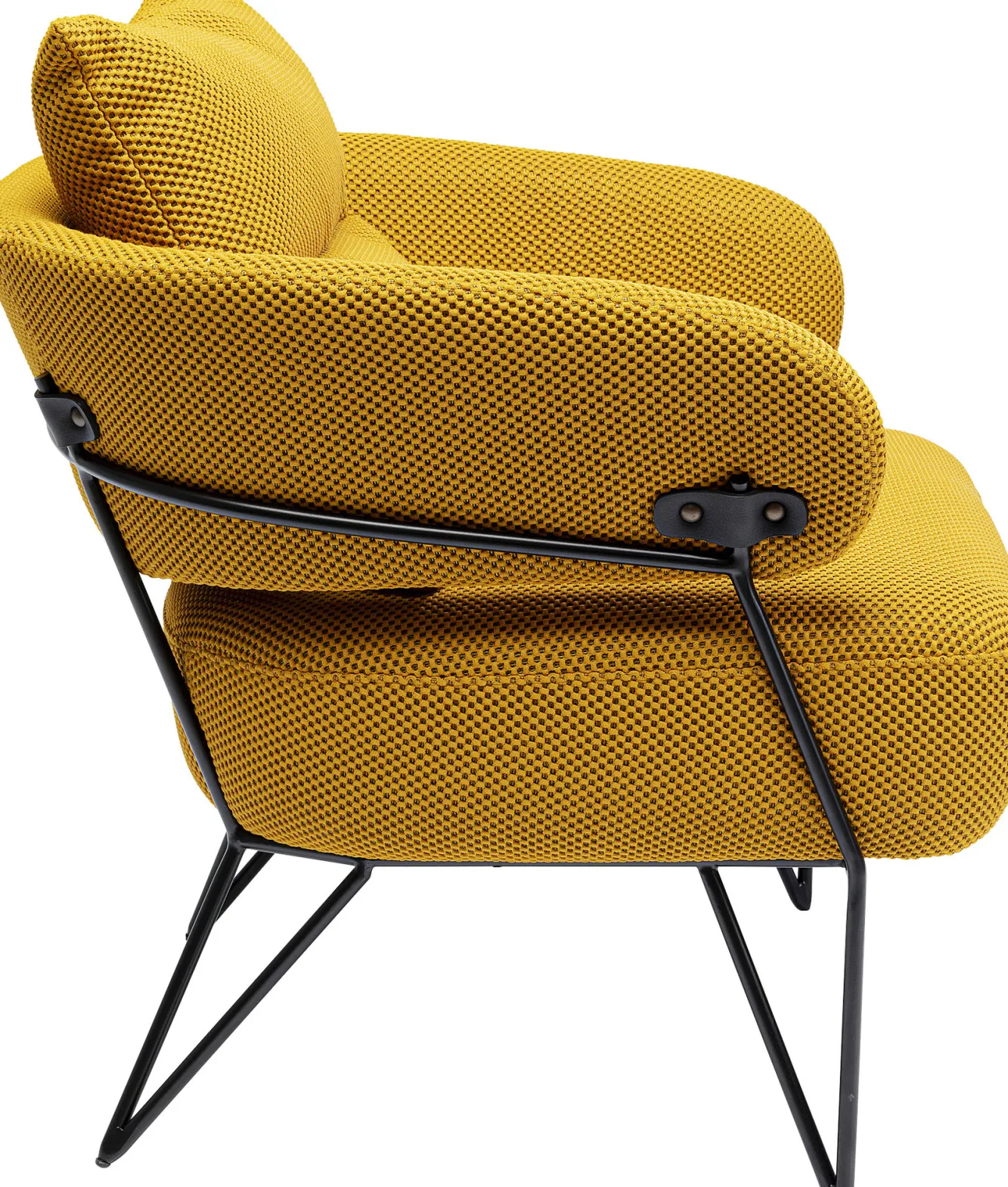Fotel nowoczesny do salonu żółty nogi stalowe czarne 78×71 cm