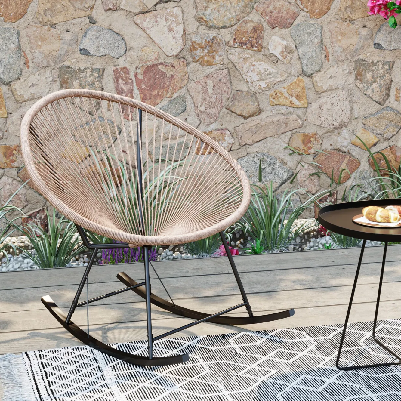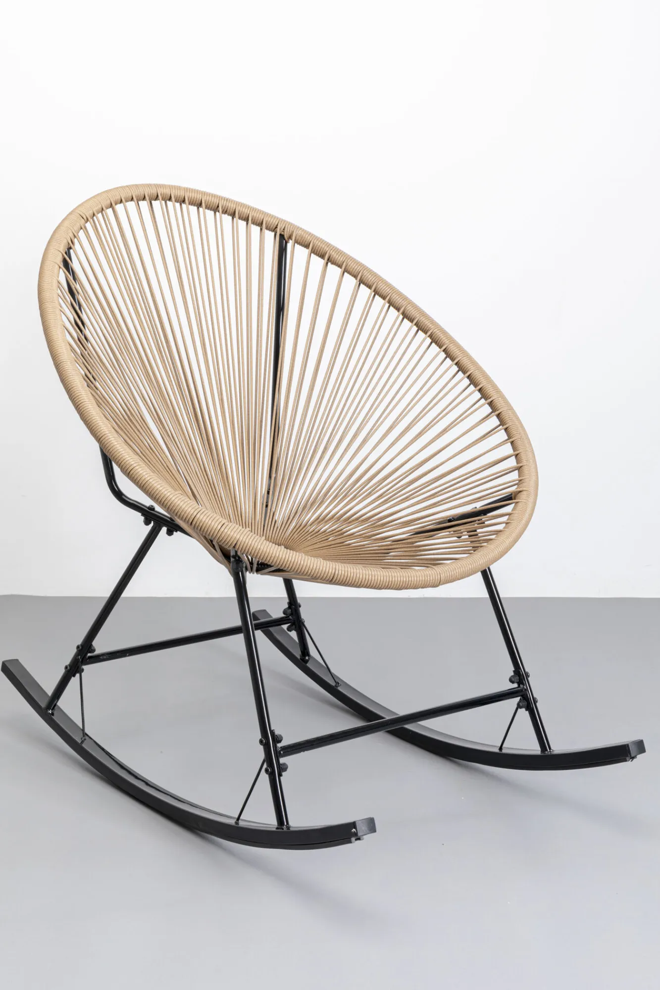 Fotel ogrodowy bujany naturalny nogi stalowe czarne 73×85 cm Rama, nogi: stal malowana proszkowo.Siedzisko: polietylen.
