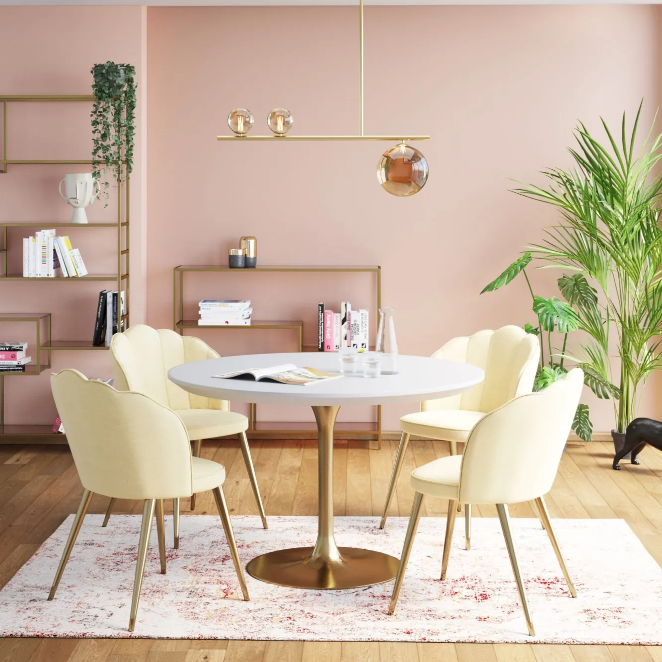 Stół Invitation Ø90 cm biały – podstawa złota Blat: płyta MDF lakierowana.Podstawa: stal nierdzewna szczotkowana.