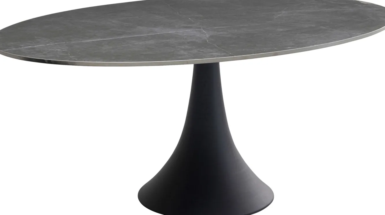 Stół ogrodowy z ceramicznym owalnym blatem noga aluminiowa czarna 180×120 cm