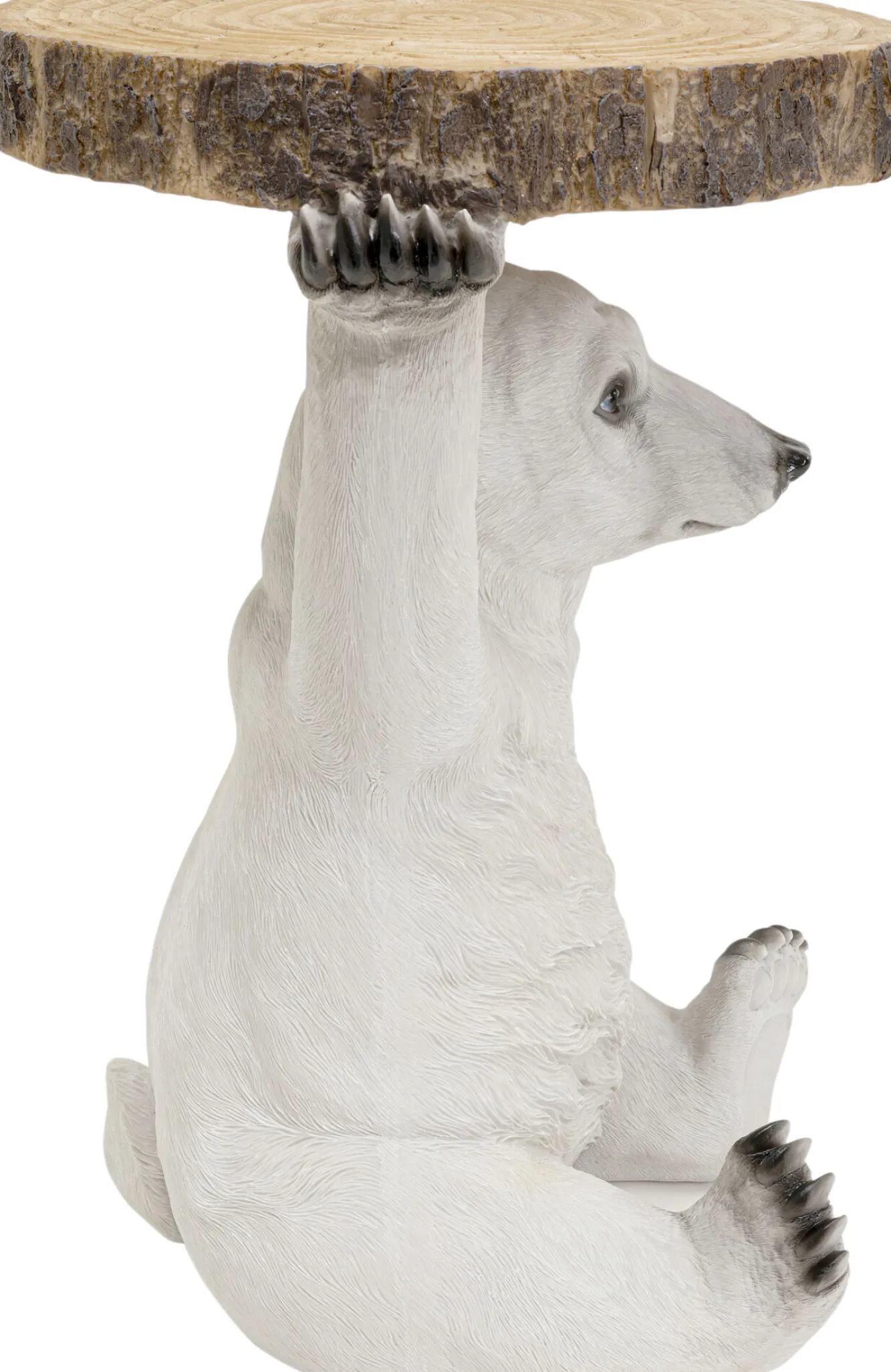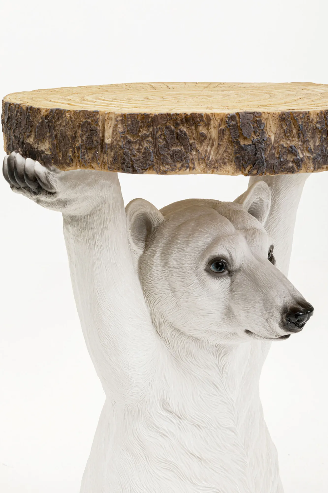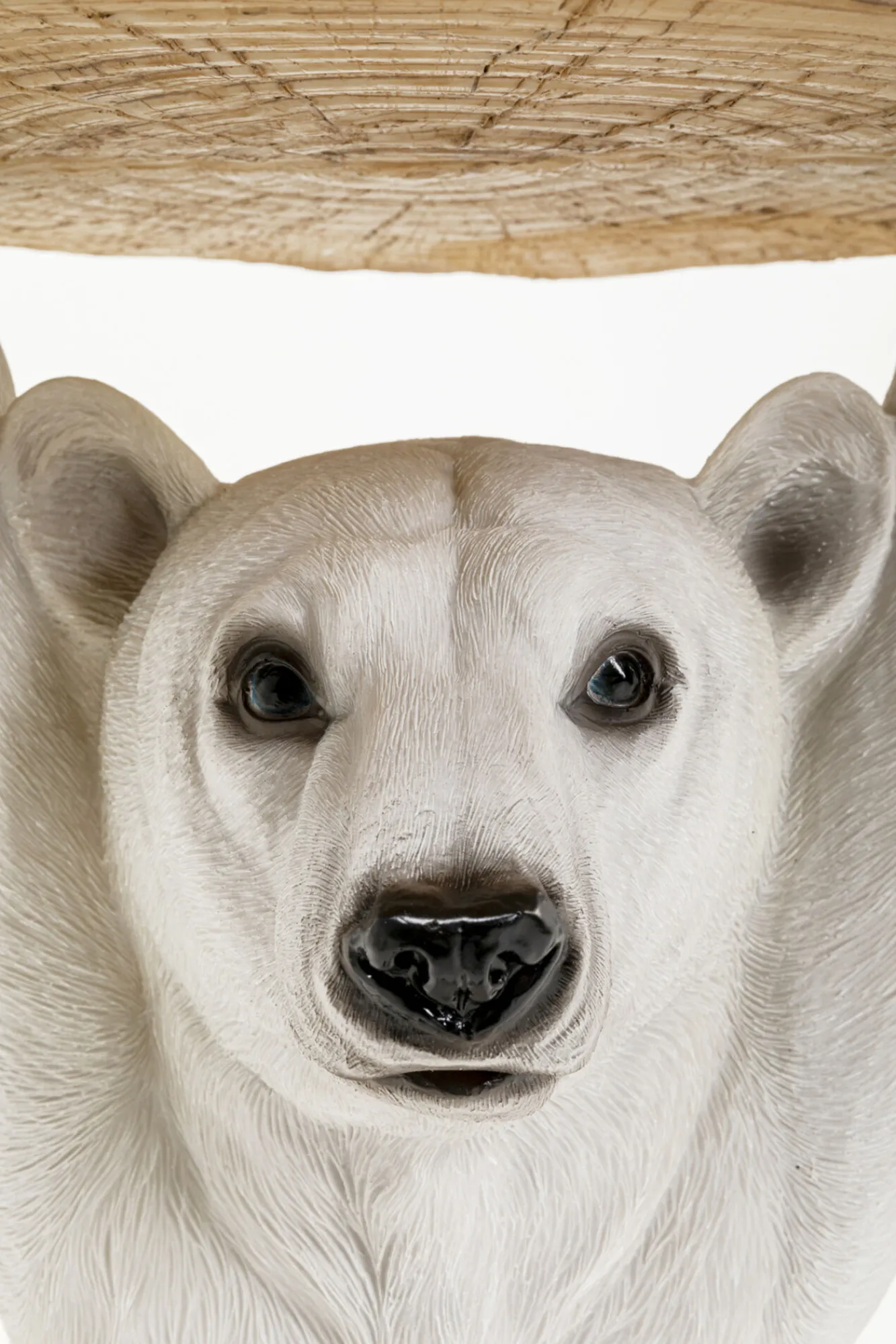 Stolik Kawowy Bear Biały Tworzywo Sztuczne Jeśli lubisz niedźwiedzie, a na pluszowego misia jesteś już za duży to stolik kawowy z serii Bear marki Kare Design jest idealną alternatywą. Stolik posiada okrągły blat imitujący kawałek wyciętego pnia, a nietypową nogę w postaci siedzącego misia polarnego wykończono z najwyższą dbałością o szczegóły. Tak więc jak masz ochotę wprowadzić odrobinę zwierzęcych klimatów do swojego wnętrza i codziennie raczyć się widokiem trzymającego Twoją kawę niedźwiadka to stolik kawowy Bear jest zdecydowanie dla Ciebie.