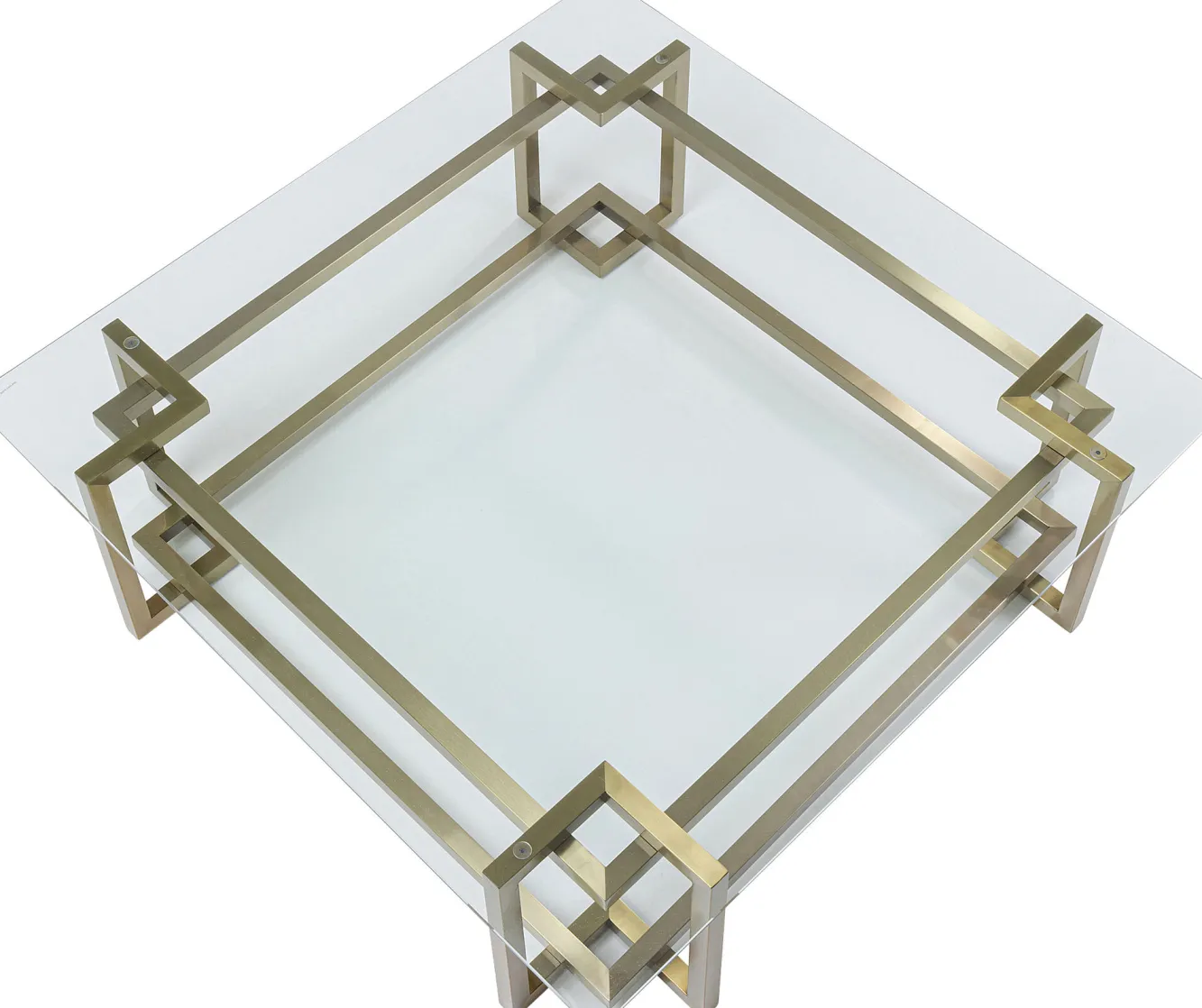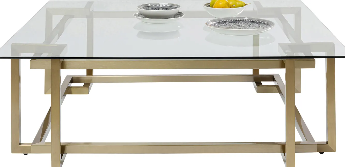 Stolik kawowy Clara 120×120 cm złoty – blat szklany