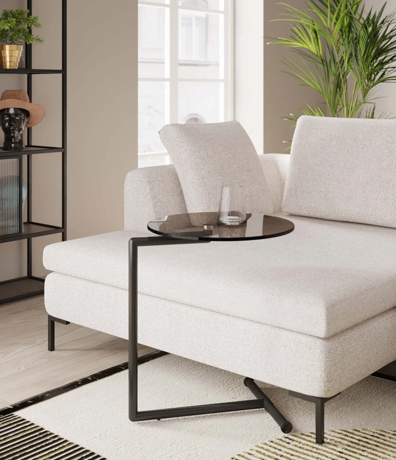 Stolik pomocniczy czarny blat szklany okrągły Ø46×63 cm Podstawa: stal malowana proszkowo.Blat: szkło hartowane 8 mm…
