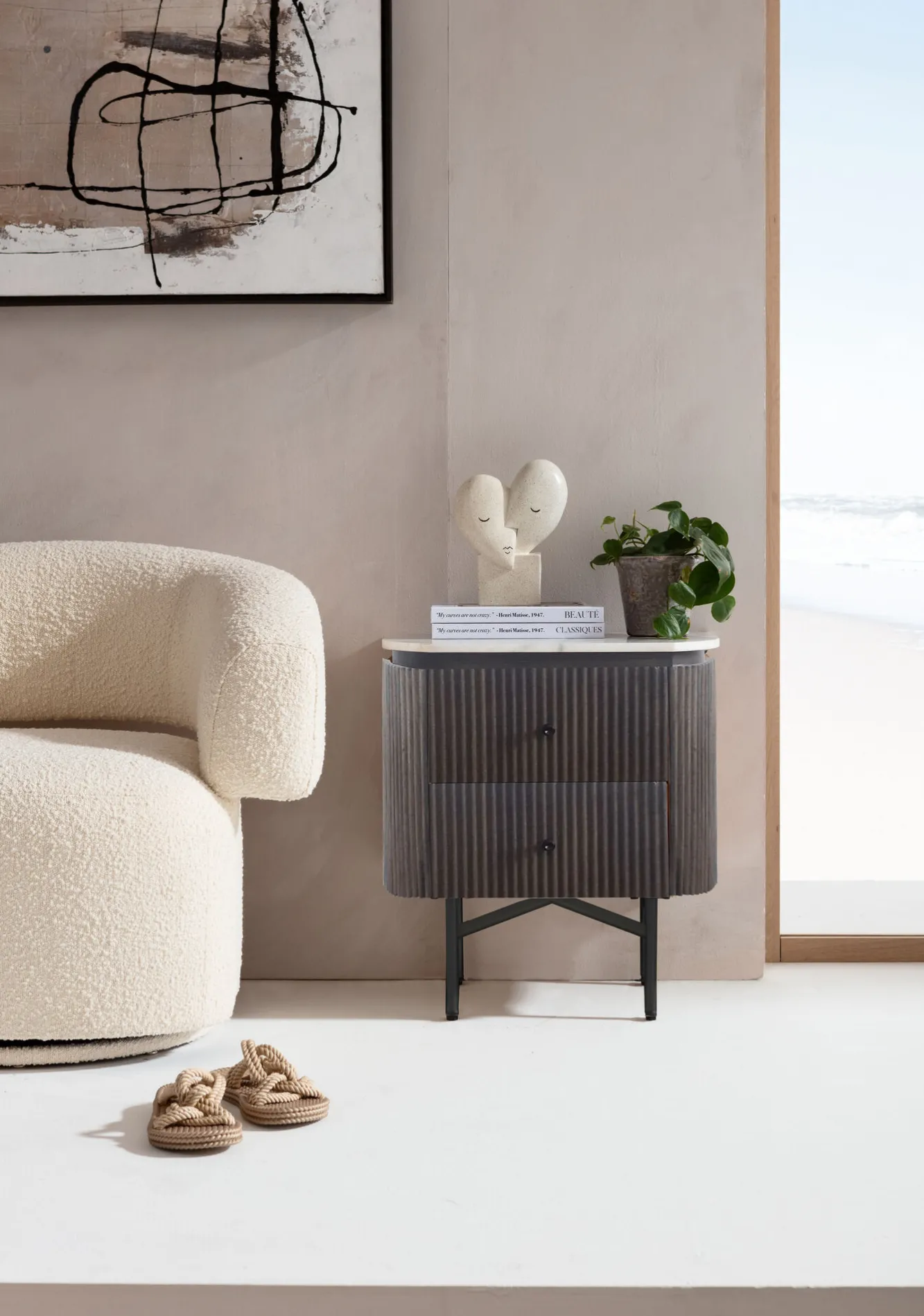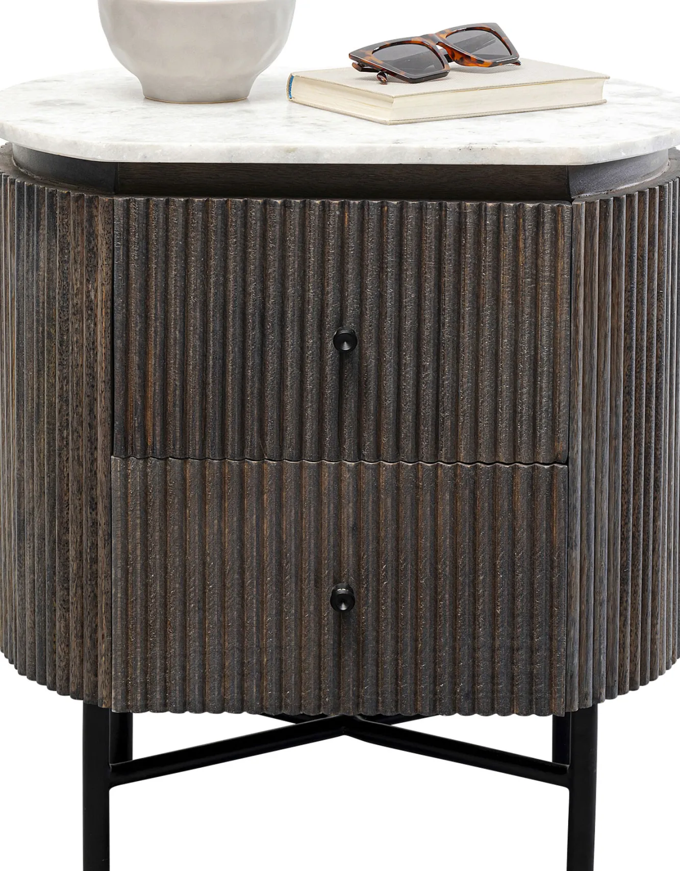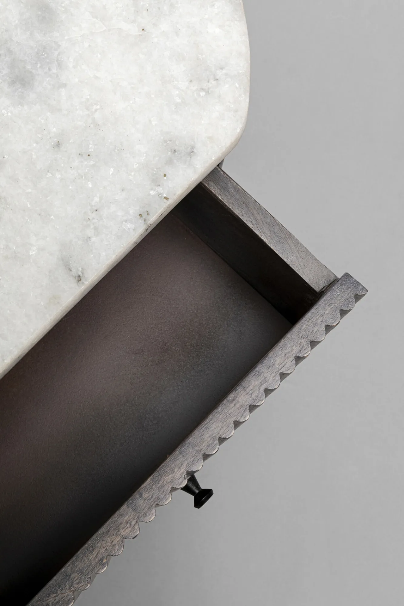 Szafka nocna z 2 szufladami drewno mango i marmur 50×55 cm