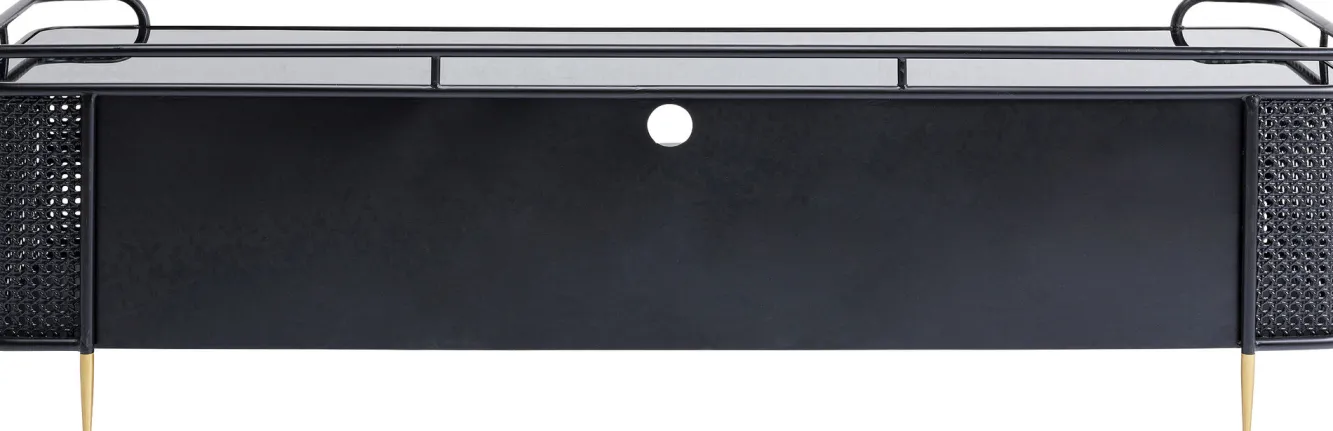 Szafka RTV stalowa czarna blat szklany 160×48 cm