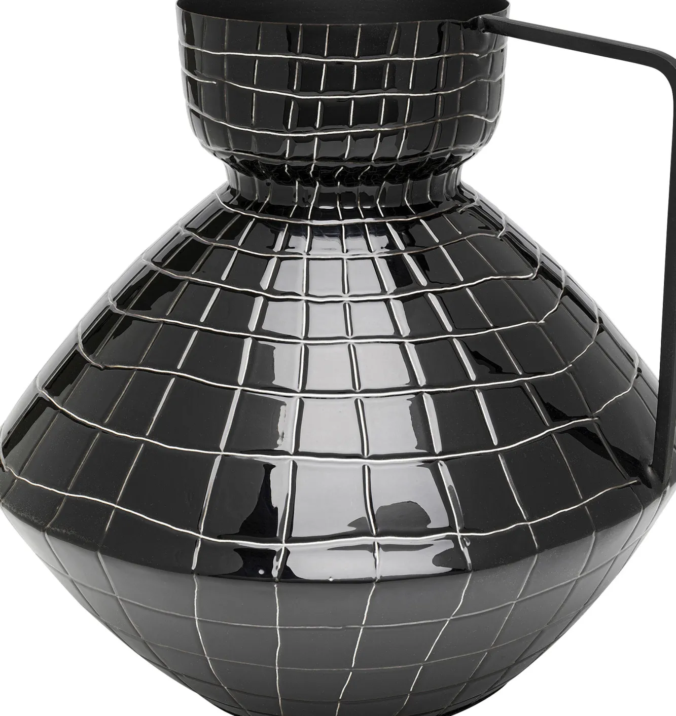 Wazon z uchwytem czarny stal emaliowana Ø30×29 cm Ręczne wykonanie. Każdy egzemplarz jest niepowtarzalny i unikatowy.