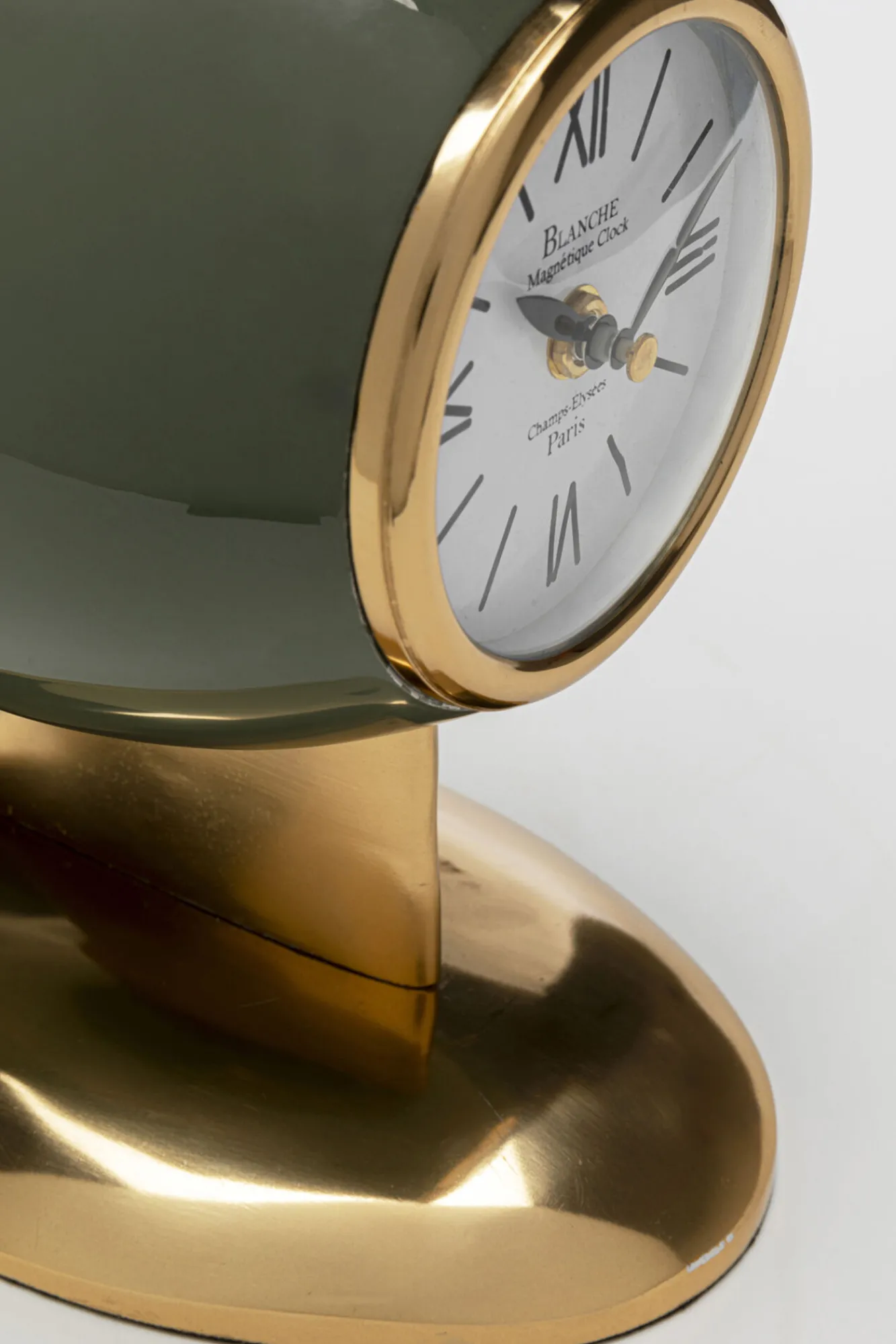 Zegar stołowy zielono-złoty stalowy 57 cm Zasilanie: 1x bateria AA (brak w zestawie).